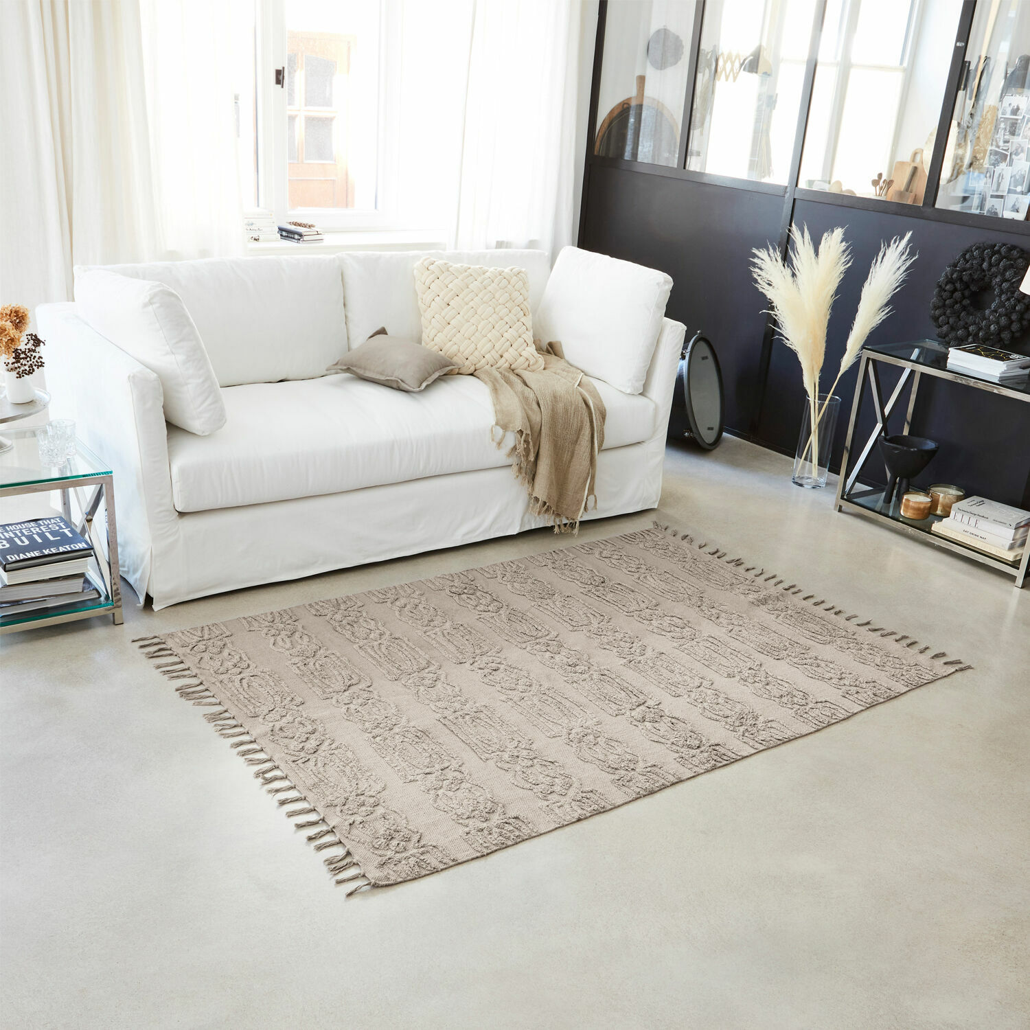 Es gibt viele Möglichkeiten einen Teppich zu interpretieren – mal ganz schlicht, farbenfroh oder in auffällig schönen Muster-Varianten. Dieser hochwertige getuftete Teppich hat jedoch in dieser wunderbaren Vielfalt eine Ausnahmestellung verdient. Denn seine besondere Wirkung erzielt er durch die unterschiedliche Hoch- und Tiefstruktur. Dabei entstehen kunstvolle Ornamente, die zum schmückenden Detail werden und für aufregende Hingucker sorgen. Das Naturmaterial aus weicher Baumwolle eignet sich ideal für den Look – es verleiht die behagliche Wohnlichkeit, aber auch Strapazierfähigkeit, die wir gerade im Alltag so schätzen. Lange Fransen an den Abschlusskanten runden das Gesamtbild gelungen ab. Ein außergewöhnlicher Charakterdarsteller, der mit Einrichtungen im Boheme-Stil oder Vintage-Chic perfekt harmoniert. Doch auch in moderne Wohnwelten fügt er sich ein und setzt einen reizvollen Akzent.