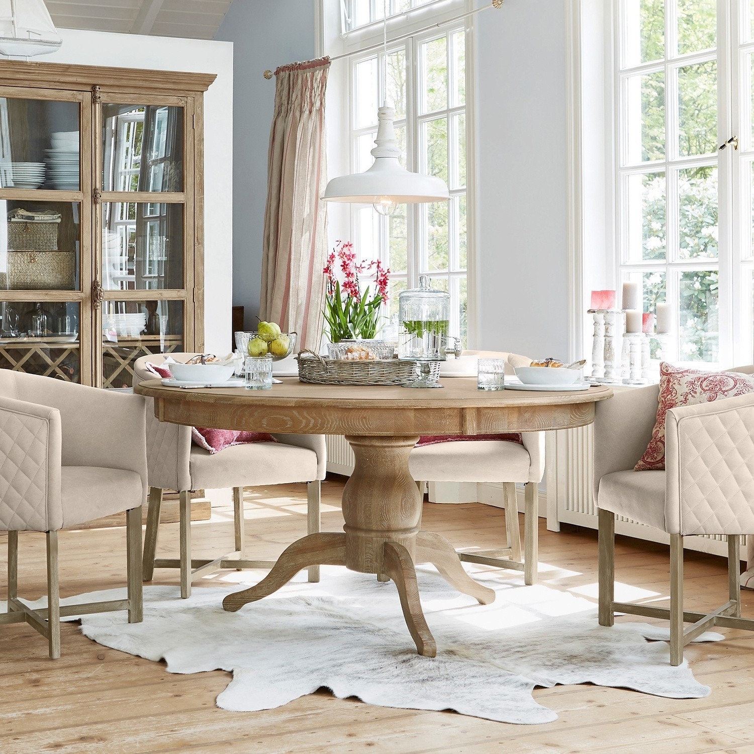 Qualitätsbewusst! Aus massivem Eichenholz mit stilvollem Antik-Finish und barock geschwungenem Mittelfuß. Ausziehbar zum stattlichen Oval. Der stilvolle Esstisch […]