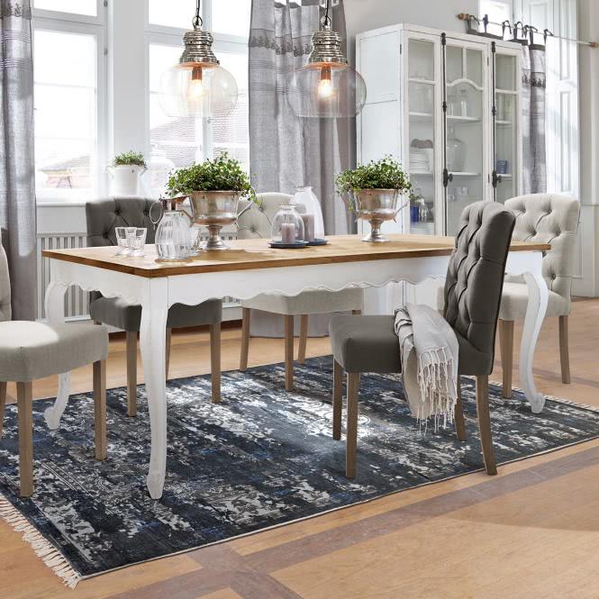 Hier finden bis zu zehn Personen gemütlich Platz. Sehr edel die massive Mangoholzplatte mit kunstvollen Einlegearbeiten und die geschwungenen Beine. Ein Tisch fürs […]