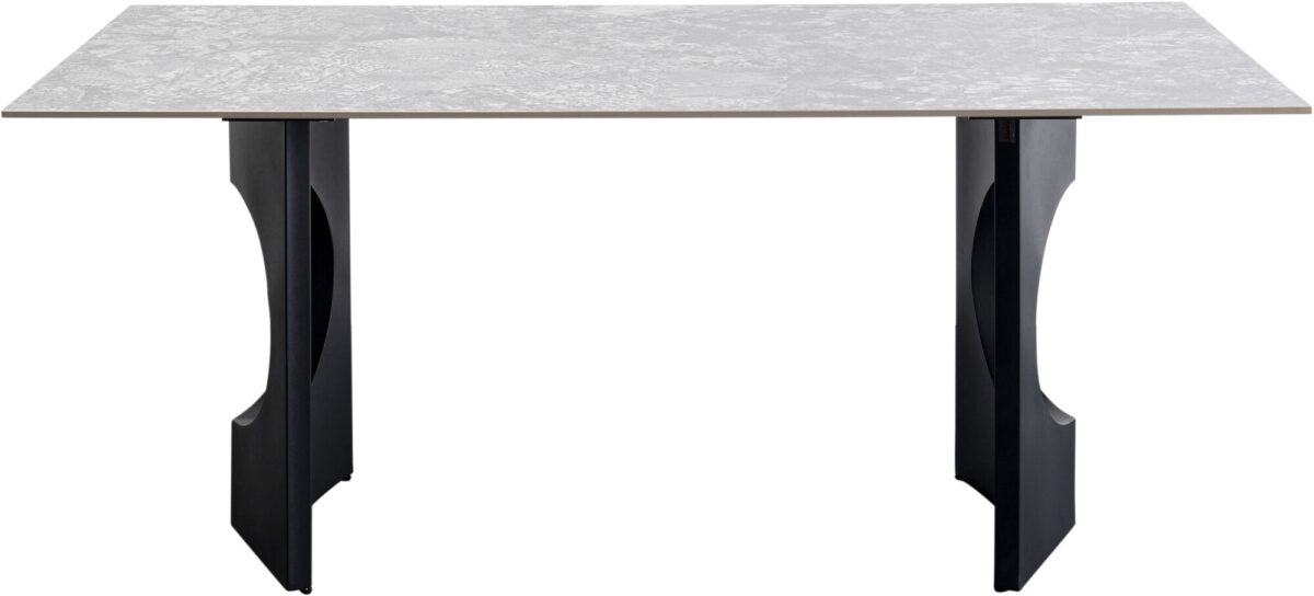 Dieser skulpturale Designer-Tisch von KARE ist ein wahrer Blickfang für stilbewusste Einrichtungsliebhaber mit hohem Anspruch. Mit seiner rechteckigen Tischplatte aus echter Keramik und der subtilen Maserung in Schwarz und Grau zieht er alle Blicke auf sich. Die robusten Beine aus pulverbeschichtetem Stahl sorgen dabei für einen stabilen Stand. Dieses Designer-Möbel ist nicht nur ein Statement in Sachen Ästhetik, sondern auch ein langlebiges und qualitativ hochwertiges Möbelstück, das Ihrem Wohnraum einen Hauch von Exklusivität verleiht. Perfekt für alle, die Design und Funktionalität vereinen möchten. Material: (Gestell: Stahl pulverbeschichtet, Tischplatte: Steinzeug glasiert)