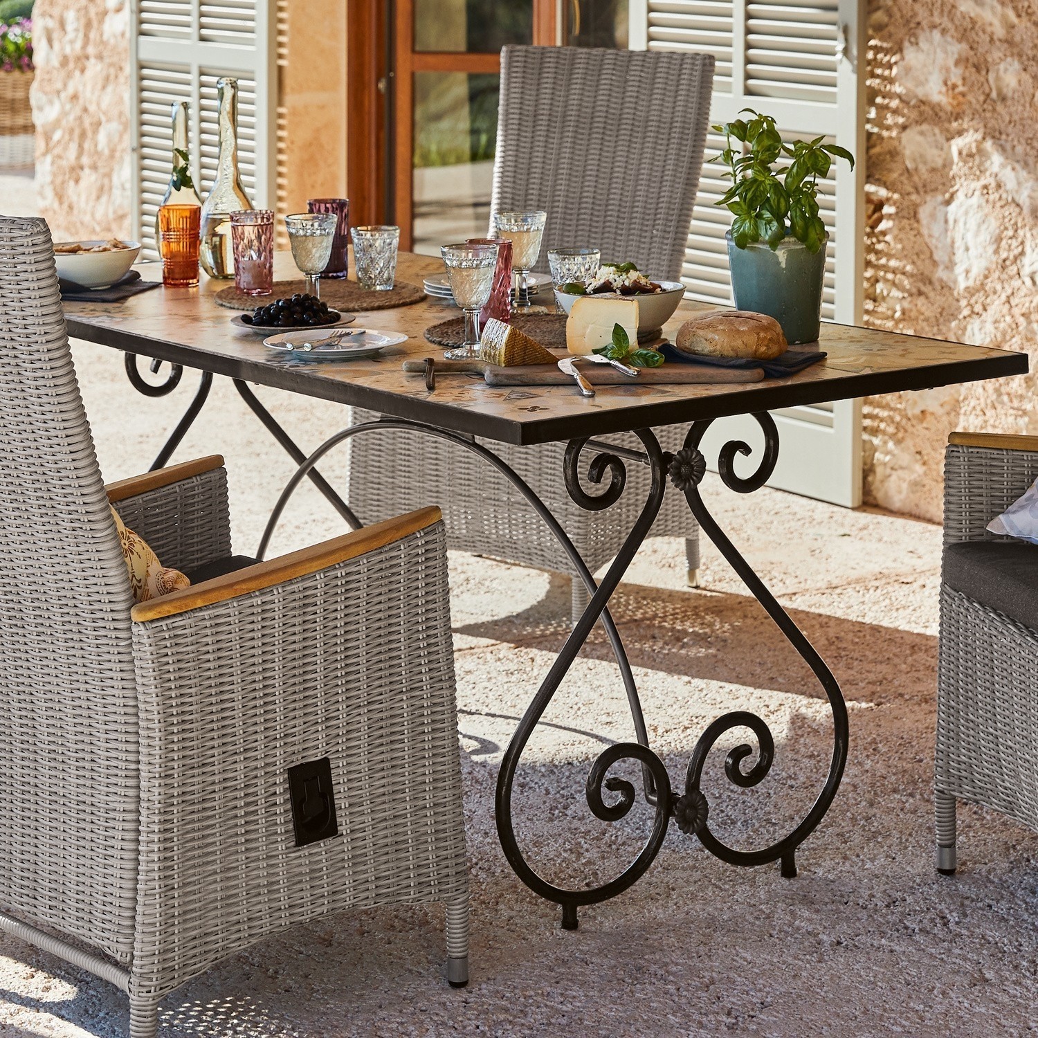 Wunderschöne große Mosaik-Fliesen voller Details. Luxuriöses Design aus einem handgeschmiedeten, pulverbeschichtetem Eisengestell und einer edlen Tischplatte, die […]