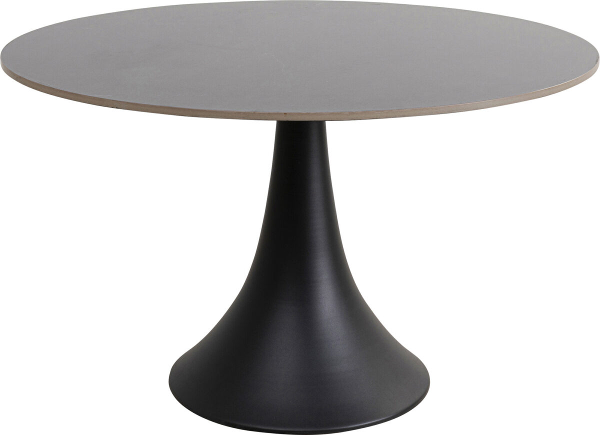 Ein runder Esstisch mit futuristischen Vibes: Mit diesem skulpturalen, Tisch ganz in Schwarz holen Sie sich definitiv ein modernes Statement-Möbel in Ihr Zuhause! Der große Vorteil ist, dass dieser Tisch sowohl als Gartentisch auf Terrasse und Balkon eingesetzt werden kann, als auch als Tisch im Esszimmer. Die hochwertige Tischplatte aus dunkler Keramik erinnert durch ihre Maserung und Optik an Naturstein. Den Look perfekt macht der extravagante Fuß aus pulverbeschichtetem Metall in Tulpenform. Mit der Farbe Schwarz fügen Sie zudem einen spannenden Kontrast in Ihren Wohnstil ein. Bietet Platz für ca. 4 bis 5 Personen. Material: (Tischplatte: Steinzeug, Fuß: Aluminium pulverbeschichtet (und klar lackiert))