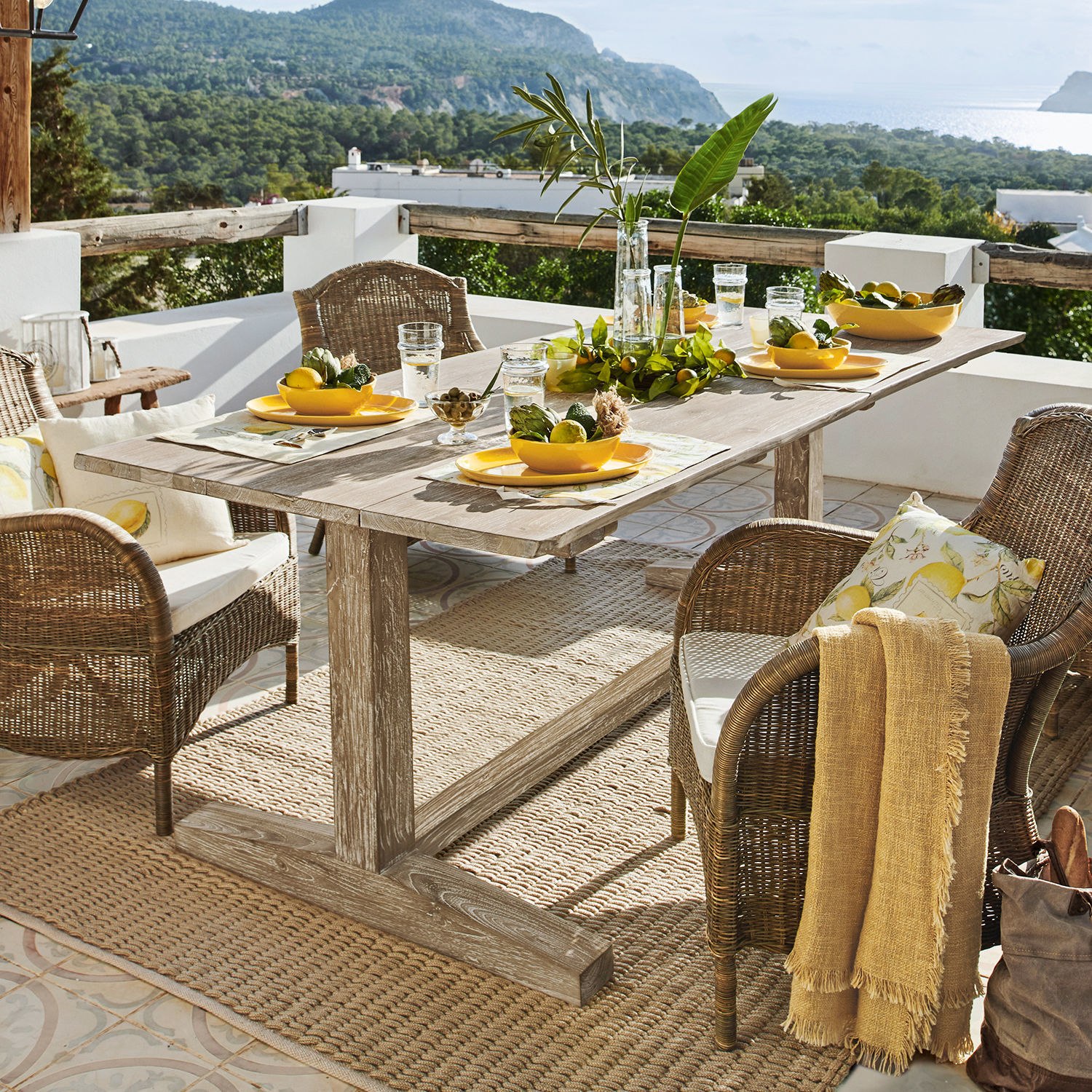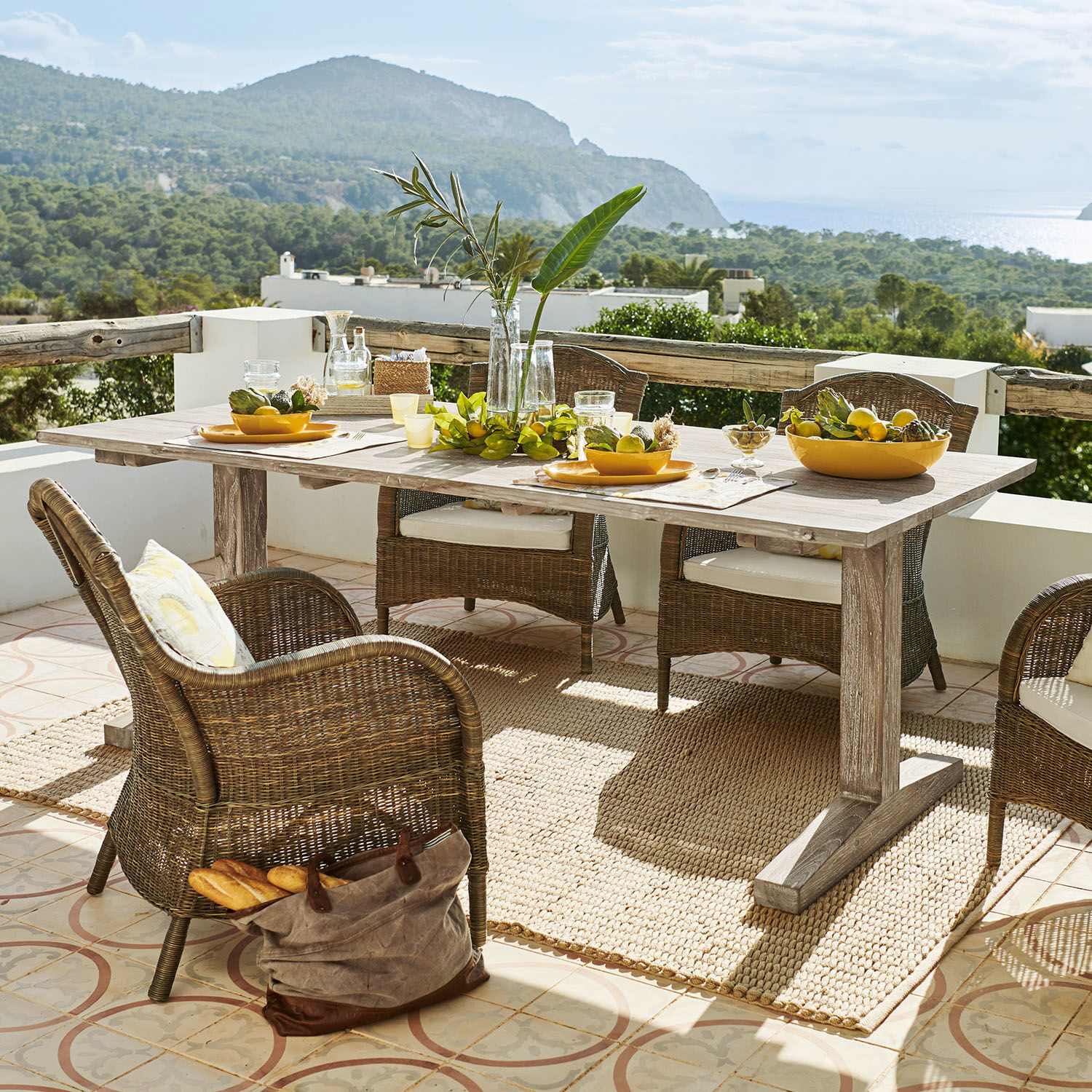 Eine lange Tafel im Schatten knorriger Olivenbäume. Frisches Landbrot, Käse und ein paar Oliven werden auf die rustikale Holzplatte gestellt, dazu Gläser und eine Karaffe kühler Landwein, während die Sonne über dem Meer versinkt – wünschen wir uns nicht alle manchmal so eine Auszeit? Mit einfachen, aber guten Speisen und in Gesellschaft netter Leute? Bitte sehr, das können Sie gleich haben. Vielleicht nicht unter einem alten Olivenbaum, aber auf jedem Fall mit einem rustikalen Holztisch, wie er jedem toskanischen Landgut alle Ehre machen würde. Dieser Tisch ist nicht aus frischem, sondern aus wiederaufbereitetem Teakholz gefertigt, das seine ganz eigene Lebensgeschichte mitbringt und jeden Tisch zu einem unverwechselbaren Unikat macht. Die Platte besteht aus drei massiven Bohlen, die eine charaktervolle Maserung zeigen und im Laufe der nächsten Jahre noch ausdrucksstärker werden. Und handelt es sich bei Teakholz um eines der widerstandsfähigsten und härtesten Edelhölzer, so ist das Naturmaterial als wiederaufbereitete Variante nahezu unverwüstlich. Das bedeutet: Sie können den Tisch unbesorgt draußen im Freien stehen lassen, bei Sonne, bei Regen und sogar bei Schnee. Denn vielleicht laden Sie Ihre Freunde ja auch mal zum trendigen Wintergrillen ein?
