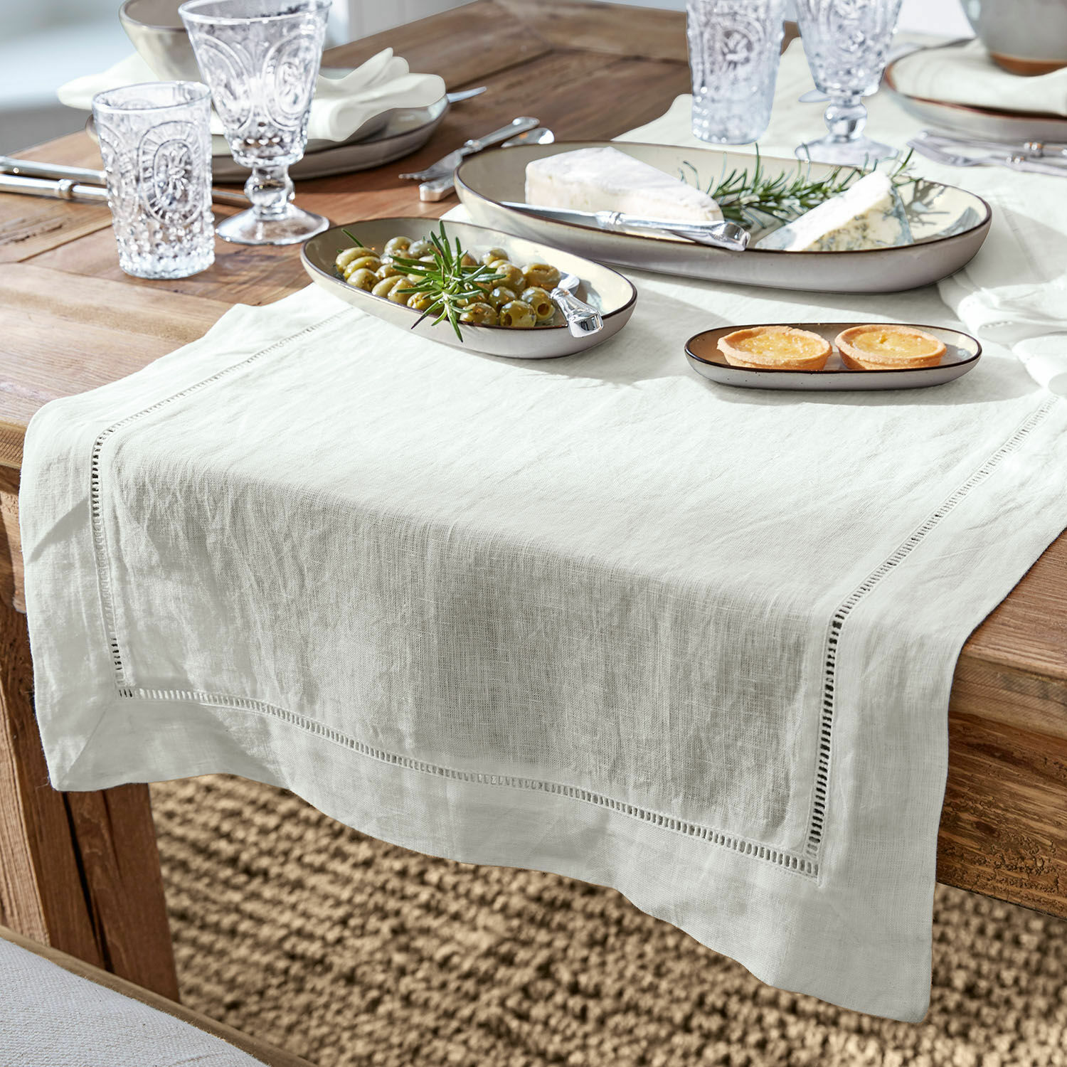 Manchmal ist weniger mehr. Damit die schöne Maserung Ihres Holztisches auch für Ihre Gäste sichtbar bleibt, sind schmale Tischläufer die ideale Wahl. Ob mittig gelegt oder in Kombination mit weiteren Tischläufern verleihen Sie ihrem stilsicheren Geschmack den perfekten Ausdruck. Dazu gehört auch dieser Tischläufer, der nicht nur durch sein schlichtes Design besticht, sondern auch durch seine hochwertige Qualität und Verarbeitung. Das Gewebe aus einem natürlichen Leinen- und Baumwoll-Mix weist eine wunderschöne unregelmäßige Struktur auf, zugleich ist es strapazierfähig, langlebig und waschbar. Dazu kommt die schmückende Hohlsaumstickerei, die dem Textil einen stilvollen Rahmen verleiht. Mit den passenden Stoffservietten Nr. 20529 ergänzt sich der Tischläufer zu einem zeitlos schönen Set, das mit jeder Art von Geschirr kombinierbar ist.