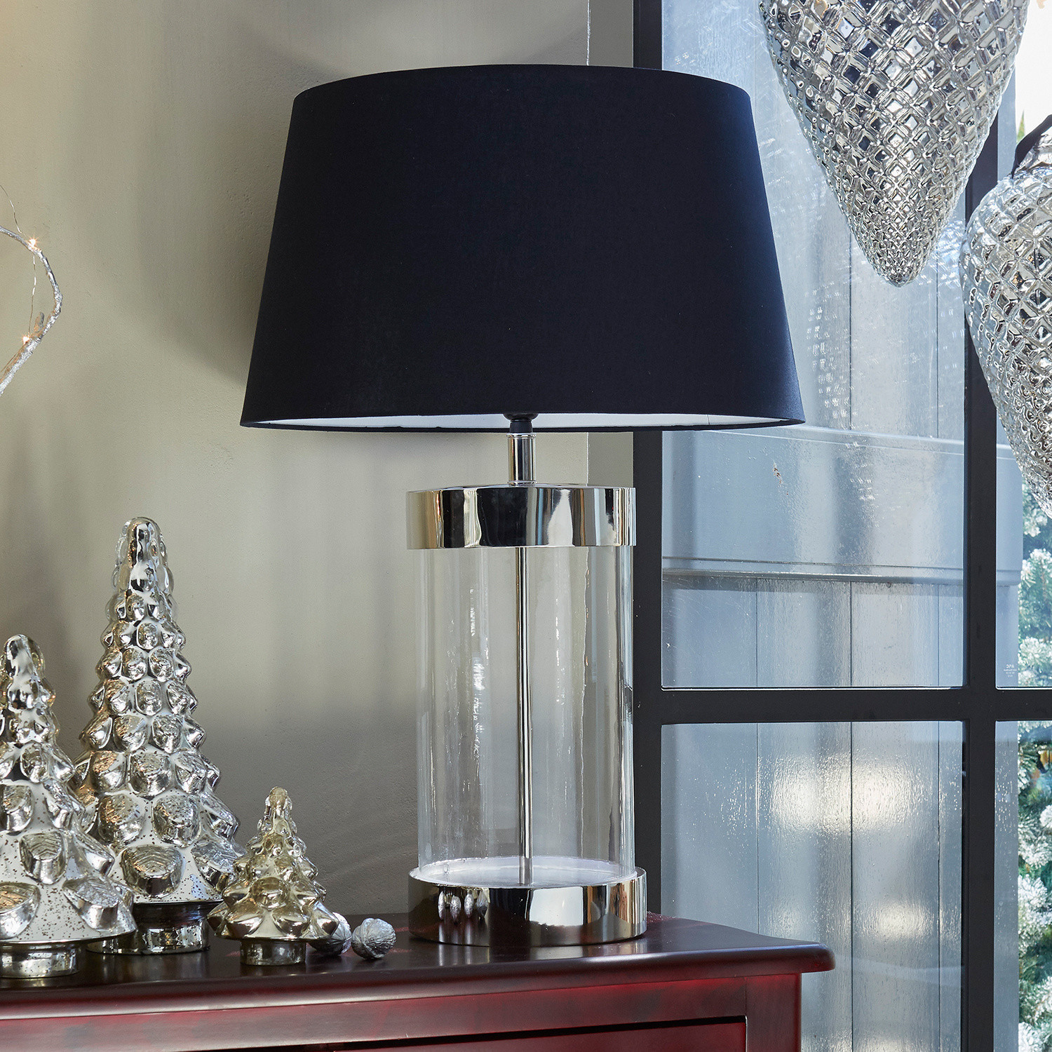 Luxuriöser Chic mit einzigartigem Glas-Fuß. Glas, vernickelter Edelstahl mit Glanz-Finish und Baumwolle im reizvollen Materialmix. Durch diese zeitlose Lampe […]