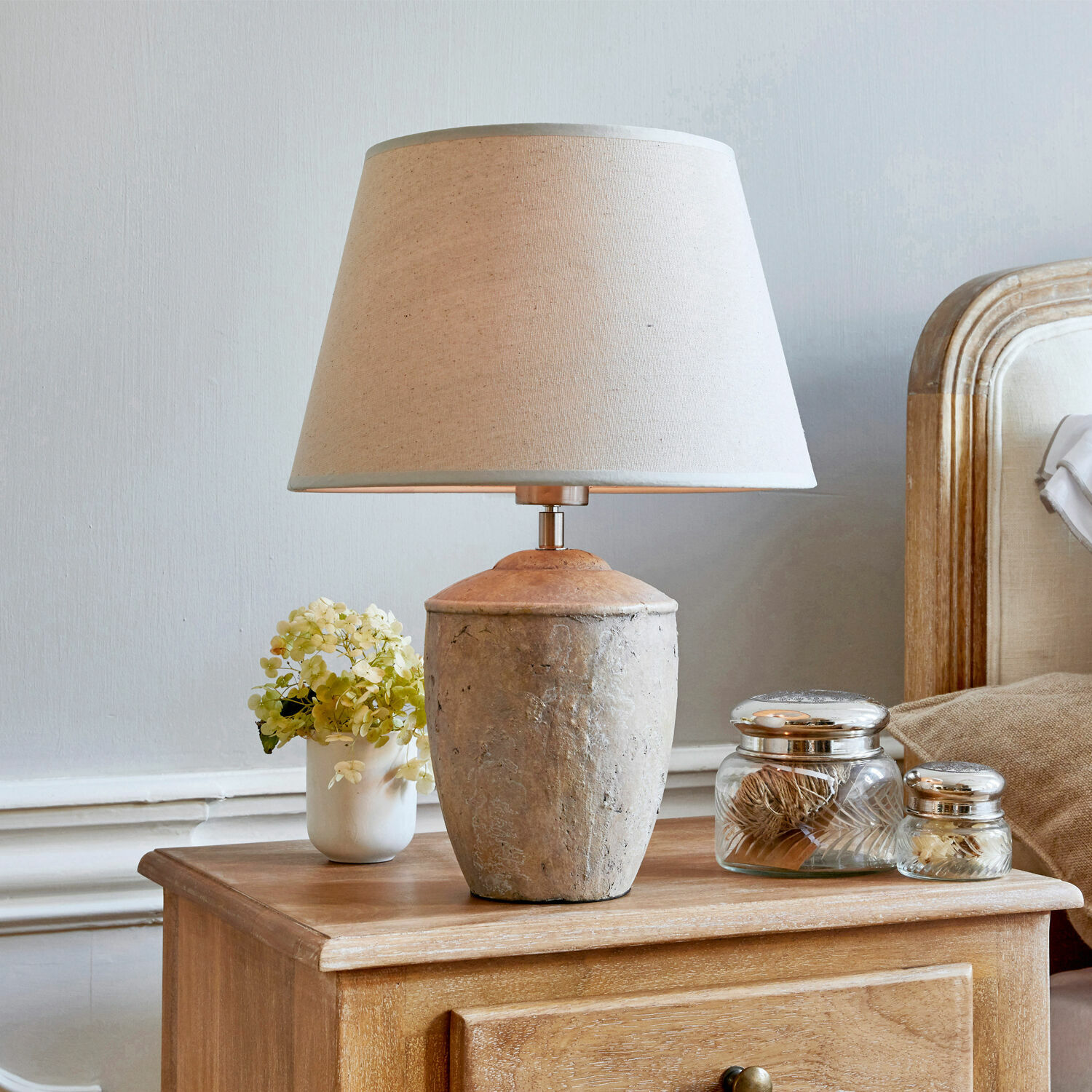 Stilsicherer Auftritt: Diese bezaubernde Tischlampe erstrahlt in schlicht-schöner Ästhetik. Der Lampenschirm ist aus nachhaltigem Leinen und sorgt für ein wunderbares Lichtambiente. Die Leuchtmittel sind nicht im Lieferumfang enthalten – so können Sie die Helligkeit selbst bestimmen. Verwenden Sie dieses Schmuckstück am besten nicht nur als Lichtspender, bereichern Sie damit Ihr schickes Wohnambiente und setzen Sie Ihre Möbel, Kunst- und Dekorationsobjekte ins rechte Licht – und in den Fokus der Aufmerksamkeit. Dabei ist die Tischlampe nicht nur ein praktisches Licht, sondern selbst ein faszinierendes Kunstobjekt, das eine elegante Antik-Optik mit einer leicht mondänen Note vereint und durch seine bewusst aufs Wesentliche reduzierte Optik einfach zeitlos ist. Der Korpus aus Keramik trägt hierzu bei und verzaubert durch seine authentisch raue Haptik. Ein Erlebnis nicht nur fürs Auge.