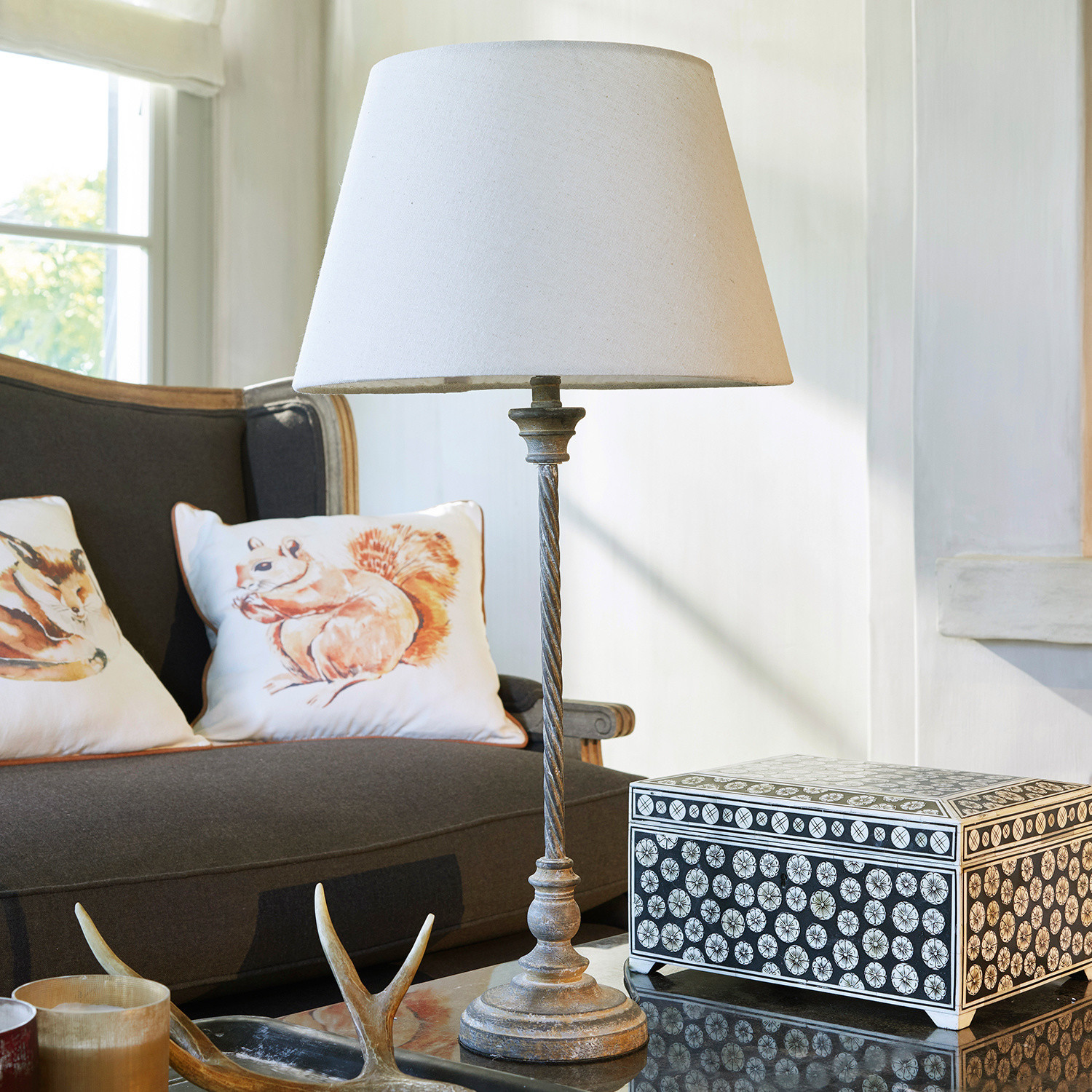 Tauchen Sie Ihre Räume in gemütliches Licht und genießen Sie den edlen Landhaus-Stil. Hierfür ist diese klassische Lampe der perfekte Partner. Der formschöne Fuß aus Kiefernholz ist von Hand gedrechselt und zeigt ein hübsches Antik-Finish. Sehr charmant auch zum Shabby-Chic. Der stilvolle Lampenschirm ist unter anderem aus leichtem Leinen gefertigt. Die Lampe macht im Arbeitszimmer, auf dem Nachttisch oder auch im Wohnzimmer eine wunderbare Figur und harmoniert mit jedem Ambiente.