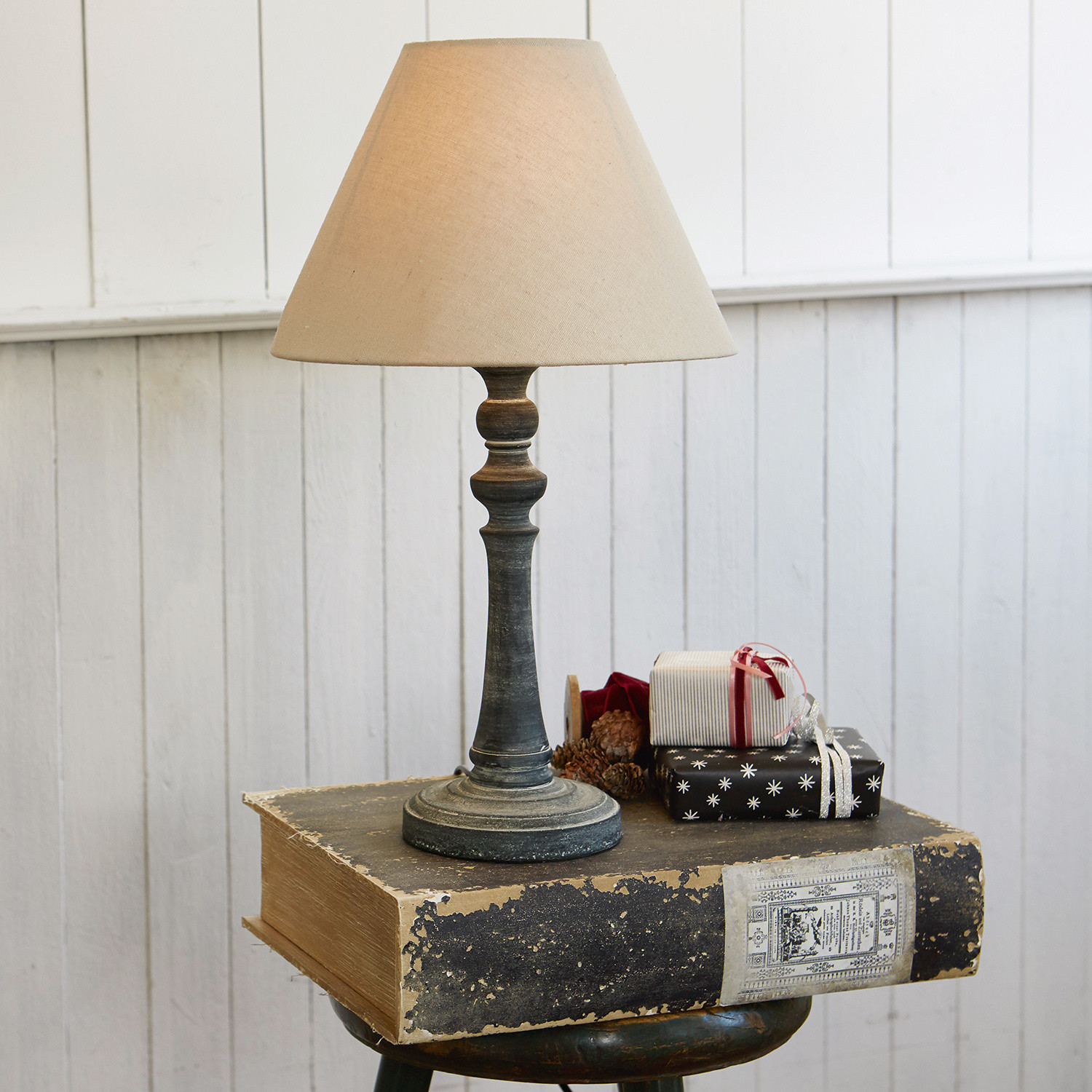 Ein zauberhafter Hingucker im nostalgisch angehauchten Stil ist dieses hübsche Lämpchen mit Antik-Finish. Der Fuß aus echtem Kiefernholz ist liebevoll von Hand gedrechselt. Sehr stimmig dazu sieht der naturfarbene Schirm aus. Dieser hat einen sehr hohen Leinenanteil. So strahlt das hübsche Stück eine harmonische Natürlichkeit aus und macht es zum liebreizenden Hingucker zu Interior im Landhaus-Stil. Doch auch zum Wohnen mit bäuerlichen Elementen oder zu klassisch gehaltener Einrichtung passt es einfach perfekt. Angeschaltet wird es mit einem Kippschalter. Ob auf dem Schreibtisch, im Flur auf einer Konsole oder als Lampe für den Nachttisch – das hübsche Stück wird Sie verzaubern.