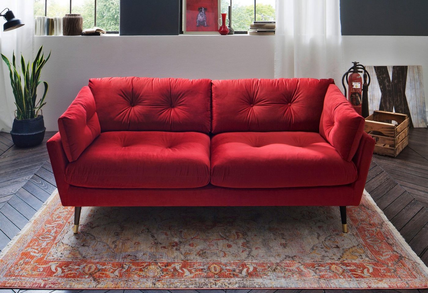 Trendfabrik 2,5-Sitzer, mit Fuß in Holz-Metallkombination,...