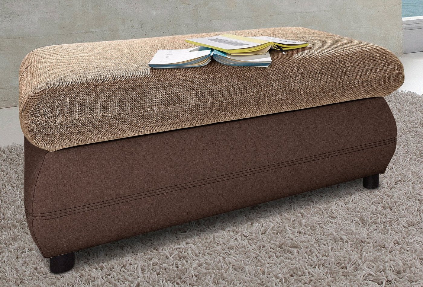 Zweifaches Platzangebot: Der trendige Hocker mit der komfortablen Wellenunterfederung und der atmungsaktiven Polyätherschaum-Polsterung lädt nicht nur zum Ausruhen ein, unter der bequemen Sitzfläche verbirgt sich auch viel praktischer Stauraum, um beispielsweise Wolldecken oder Kissen dort aufzubewahren. Der hohe Sitzkomfort wird auch durch das stabile Holzuntergestell unterstützt. Die gemütliche Sitzfläche ist mit dekorativem Strukturstoff bezogen, der sich sowohl farblich als auch in seiner Beschaffenheit von der Unterkonstruktion absetzt. Dieser moderne Materialmix kann jeder Sofaecke im Wohnzimmer besonderen Charme verleihen. Aber auch im Eingangs- oder Schlafbereich lässt sich der zeitlos schöne und hochwertig verarbeitete Sitzhocker frei im Raum positionieren und individuell mit anderen Einrichtungsstücken kombinieren. Dezente Details wie die schlichten Füße aus Kunststoff oder zarte Ziernähte runden das stilvolle Design ab. Das formschöne wie funktionale Polstermöbel ist in verschiedenen Bezugsqualitäten und Farbkombinationen erhältlich. Ob vor dem Fernsehsessel oder in einer Ecke der Diele: Der trendig gestaltete Hocker setzt einzelne Möbel genauso wie die entsprechenden Zimmer edel in Szene.