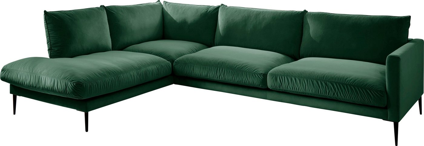 Eleganz gepaart mit Komfort: Dafür steht diese klassische Polsterecke von Trendfabrik im trendigen Design. Optisch besticht sie mit klarer Linienführung und geschmackvollen Metallfüßen. Lieferbar sind bei dieser Couch mehrere Farbvarianten, sodass du nach individuellen Einrichtungsvorlieben auswählen kannst. Gut platzieren lässt sich das Sofa frei im Raum oder kombiniert mit Sessel und Beistelltisch. Das schlichte Design integriert sich harmonisch in jeden Wohnstil, puristisch bis elegant. Für exzellenten Sitzkomfort ist das Ecksofa im Weiteren mit einer Schaumstoffflocken-Füllung und einer Wellenunterfederung ausgestattet. Bietet reichlich Platz für Familie und Freunde: die stilvolle Polsterecke von Trendfabrik mit Metallfüßen.