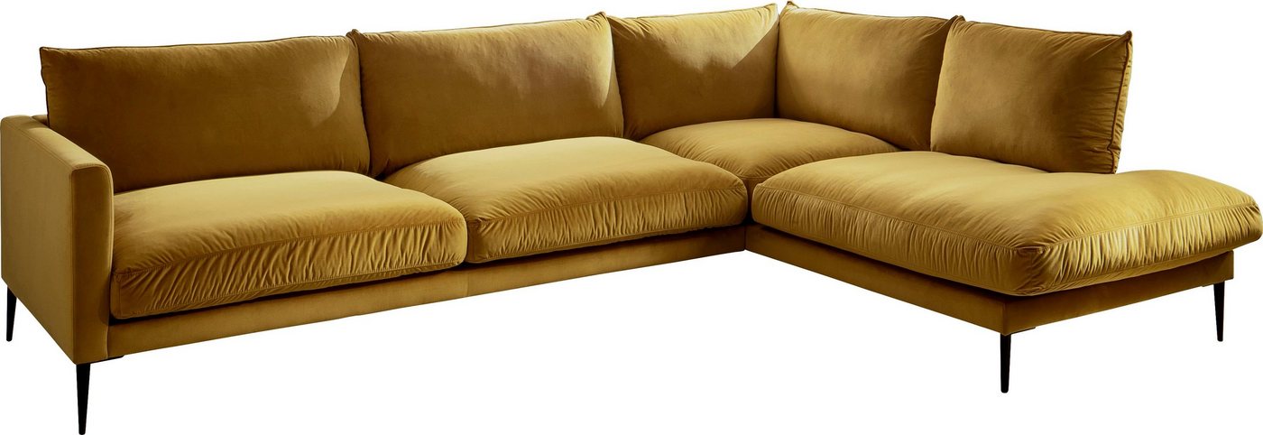 Eleganz gepaart mit Komfort: Dafür steht diese klassische Polsterecke von Trendfabrik im trendigen Design. Optisch besticht sie mit klarer Linienführung und geschmackvollen Metallfüßen. Lieferbar sind bei dieser Couch mehrere Farbvarianten, sodass du nach individuellen Einrichtungsvorlieben auswählen kannst. Gut platzieren lässt sich das Sofa frei im Raum oder kombiniert mit Sessel und Beistelltisch. Das schlichte Design integriert sich harmonisch in jeden Wohnstil, puristisch bis elegant. Für exzellenten Sitzkomfort ist das Ecksofa im Weiteren mit einer Schaumstoffflocken-Füllung und einer Wellenunterfederung ausgestattet. Bietet reichlich Platz für Familie und Freunde: die stilvolle Polsterecke von Trendfabrik mit Metallfüßen.