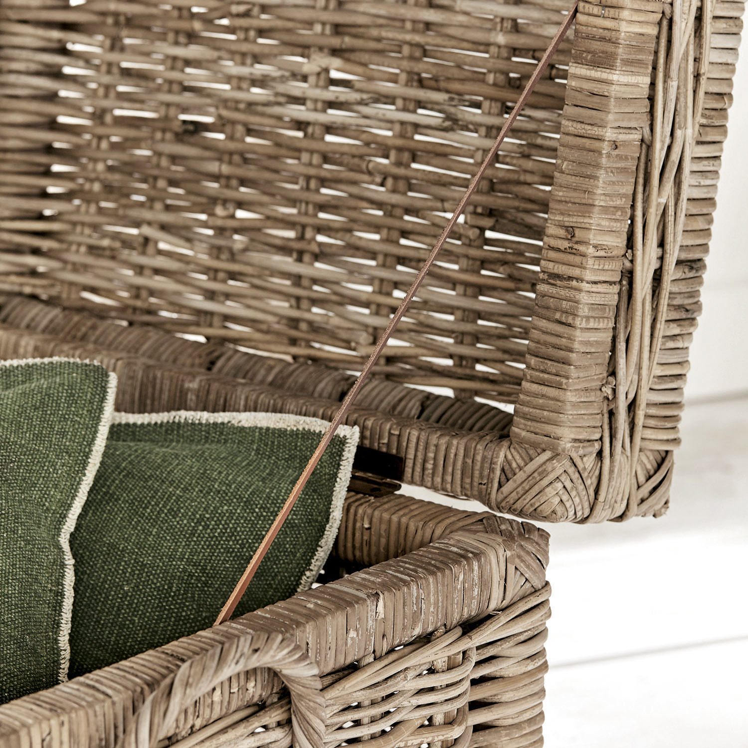 Hier haben Sie einen echten Schatz entdeckt, der Ihnen in vielen Lebens- und Wohnsituationen ein wertvoller Gefährte sein wird. Denn diese Truhe ist ganz im Stil alter Korbmacherkunst aus robustem Rattan gefertigt. Als Rattan werden die Lianen der Rotangpalme bezeichnet, die von Hand geerntet, gereinigt und zu Möbeln oder Accessoires mit natürlich schöner Anmutung verarbeitet werden. Bis ins kleinste Detail erweist sich auch diese Truhe als echtes Meisterwerk ihrer Art, was Kenner sofort an dem sehr ebenmäßigen Flechtwerk aus runden, glatten Fasern erkennen werden, denen das dezente Antik-Finish den angesagten Vintage-Charme verleiht. Doch Rattan ist nicht nur wegen seines edlen Erscheinungsbildes seit langem beliebt, Sie werden auch die ausgezeichnete Strapazierfähigkeit und Langlebigkeit der Truhe schätzen. Ebenso wie die Tatsache, dass es sich bei der Naturfaser Rattan um einen nachwachsenden Rohstoff handelt – ein Argument, das für viele Liebhaber des Landhaus-Stils immer mehr an Bedeutung gewinnt. Doch Ihre wahre Sympathie wird diese Truhe in ihrer Rolle als Stauraum-Allrounder gewinnen. Ob im Flur, im Wohnraum oder im Kinderzimmer, überall wird sie sich unentbehrlich machen. Da sie trotz des dichten Flechtwerks über eine gute Belüftung verfügt, eignet sich die Truhe besonders gut zur Aufbewahrung von Textilien. Sogar für die Schmutzwäsche im Bad.