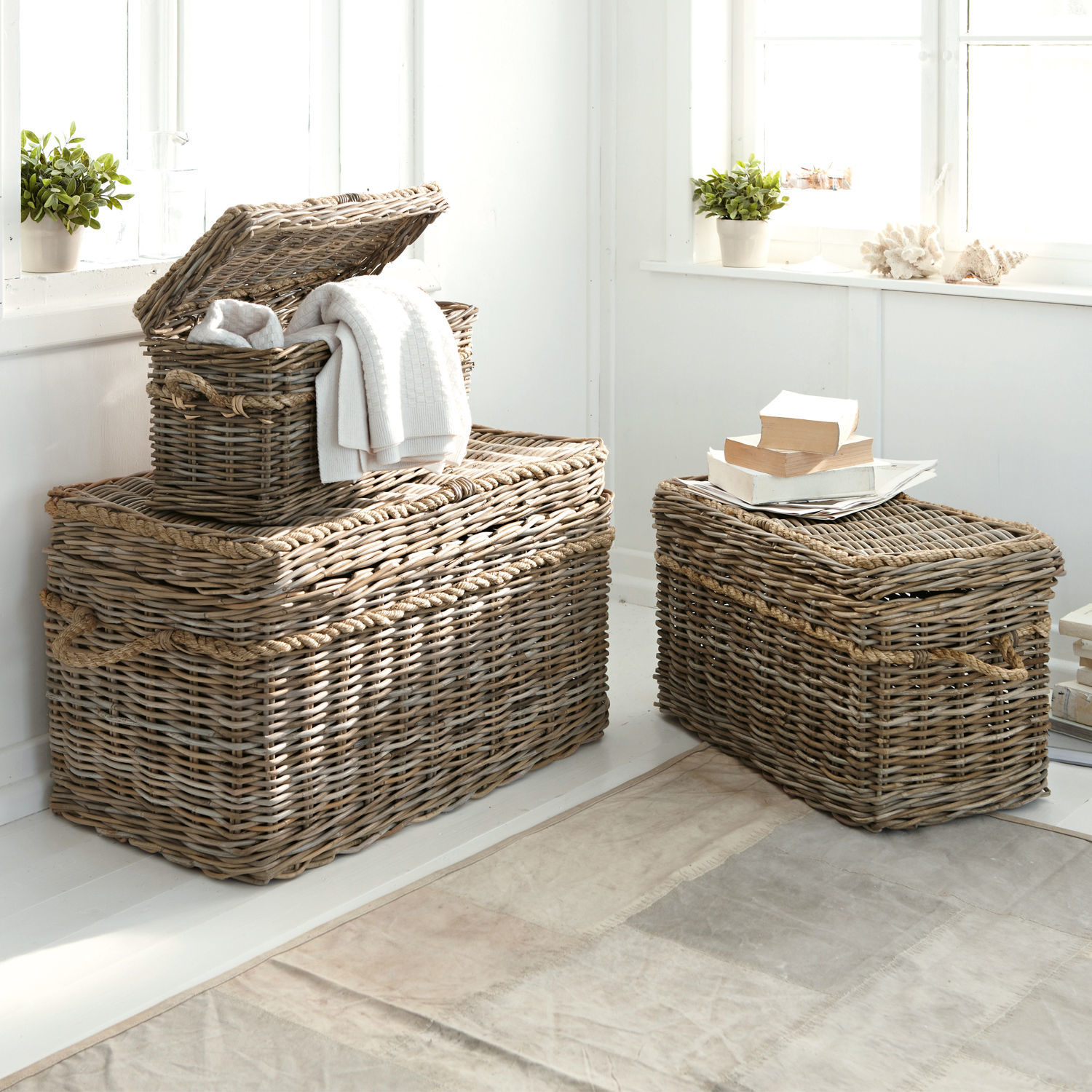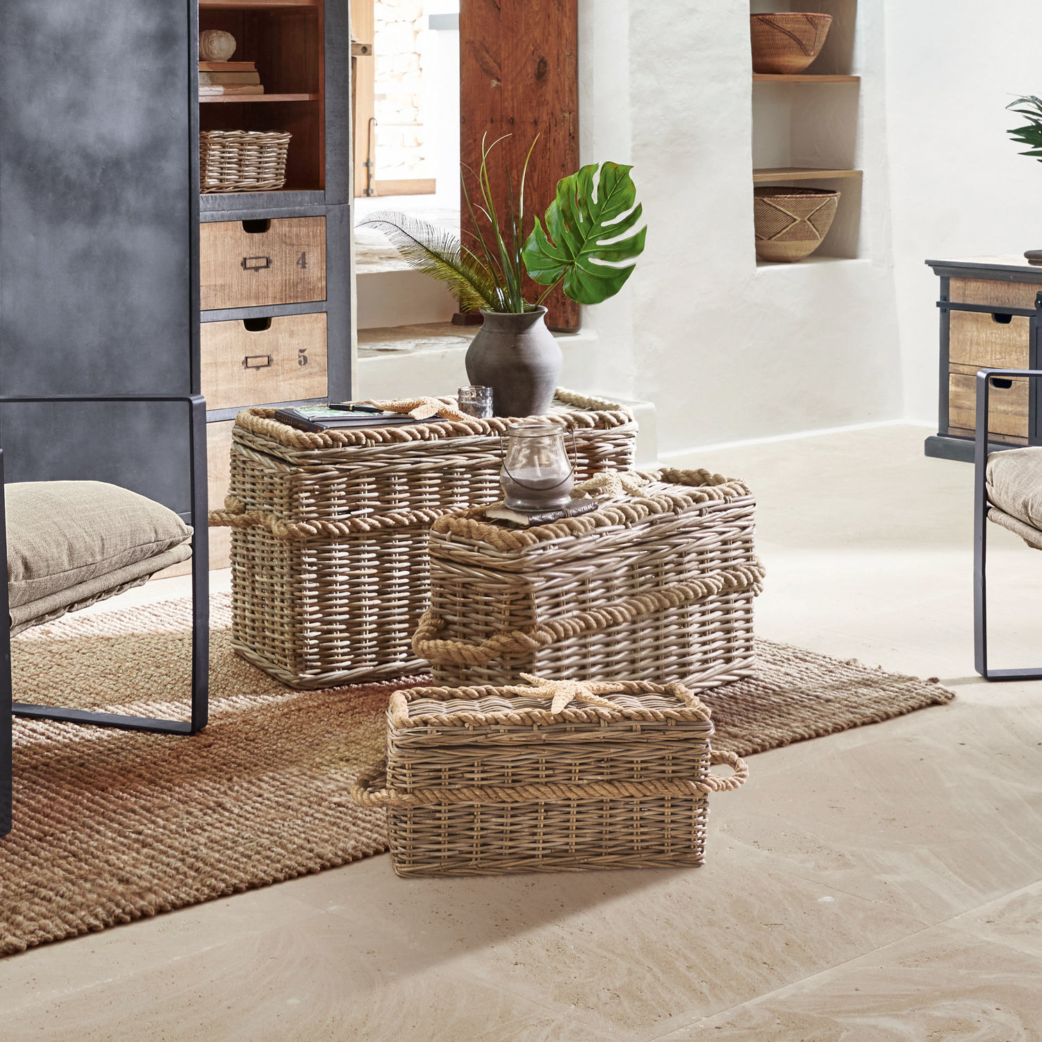 Die drei Korbtruhen aus Rattan passen genau ineinander. So nehmen sie keinen Platz weg, wenn sie nicht gebraucht werden. Die Einsatzmöglichkeiten sind vielfältig, […]