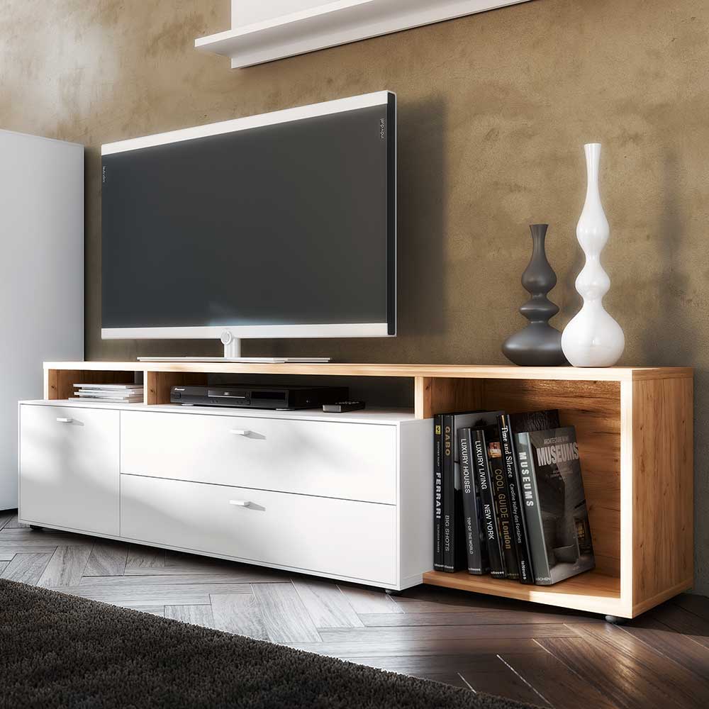 – Tv lowboard Weiß – Lowboard Spanplatte – Tv sideboard Modern – Tv unterschrank Mit zwei Schubladen, mit Selbsteinzug, mit Metallauszug und mit Soft Close – Fernsehtisch Schrank-Tür: mit Drehtüren – Tv bank 1-türig, mit Türdämpfung – Tv board Anschlag (Scharniere) der Türen: Türen wahlweise rechts und links montierbar – Kommode Ohne Beleuchtung – Phonoschrank Zerlegt, zum leichten Selbstaufbau (Montageanleitung liegt bei) – Fernsehunterschrank Deutsche Produktion – Tv möbel Melaminbeschichtet – Tv tische Metallgriffen – Fernsehboard Mit stoßfesten ABS Kanten – Tv-tische Rechteckige Form – Tvboard Holzwerkstoff Tür Varianten – Phonomöbel 001: Breite: 137 / Höhe: 39 / Tiefe: 49 / Kommoden Aufsatz: Ohne – Unterschrank fernseher 002: Breite: 185 / Höhe: 51 / Tiefe: 37 / Kommoden Aufsatz: TV AufsatzInformationen zur Lieferung:Die Zustellung dieses Produktes erfolgt per DPD. Sollten Sie bei der Erstzustellung nicht angetroffen werden, hinterlässt der Zusteller in Ihrem Briefkasten eine Benachrichtigungskarte mit dem zweiten Liefertermin, den Lieferdaten sowie Kontaktinformationen. Somit haben Sie die Möglichkeit, sich bezüglich des Empfangs Ihrer Ware mit DPD in Verbindung zu setzen. Die Zustellung erfolgt maximal 3x, sofern die beiden ersten Termine erfolglos bleiben sollten. Die Auslieferung erfolgt von Montags bis Freitags. Eine Zustellung an Sonn- und Feiertagen ist nicht möglich.