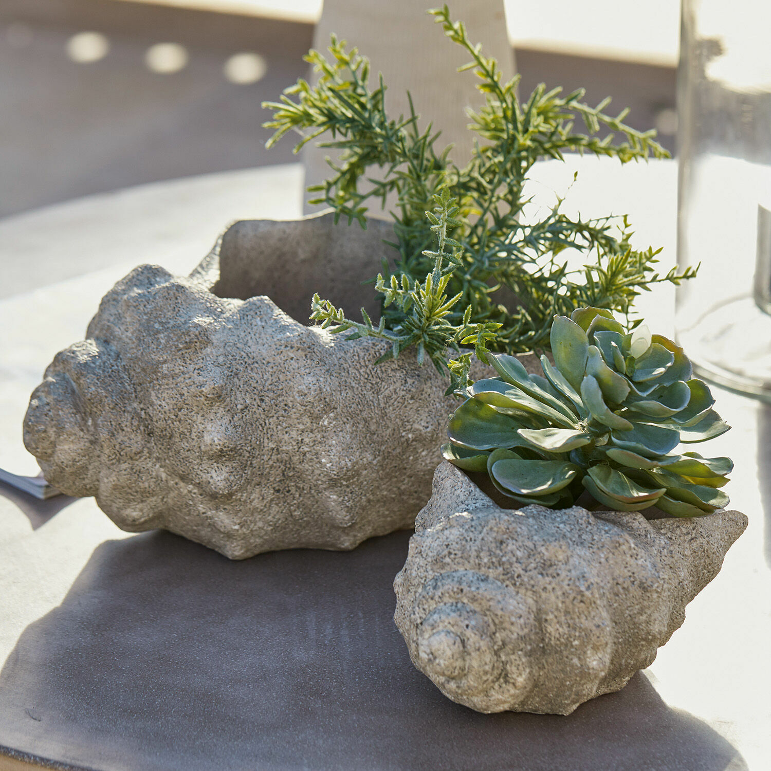 Holen Sie sich das Gefühl von Strand und Meer nach Hause und freuen Sie sich auf zwei kunstvolle Designs aus Polyresin. Sie sind ganz naturgetreue Nachbildungen und in feiner Handarbeit veredelt. Im Set sind zwei Größen enthalten. Träumen Sie bei diesem Anblick von einer verwunschenen Unterwasserwelt und setzen Sie einen sehr dekorativen Akzent – schön im Badezimmer, in Wohnräumen wie auch auf dem Balkon. Die beiden edlen Accessoires sind vielseitig nutzbar, zum Beispiel zum Aufbewahren kleiner Dinge oder vielleicht als Halter für Stifte und Schminkpinsel. Hier können Sie kreativ werden. In jedem Fall gewinnt Ihr Interieur hiermit an individuellem Charme.