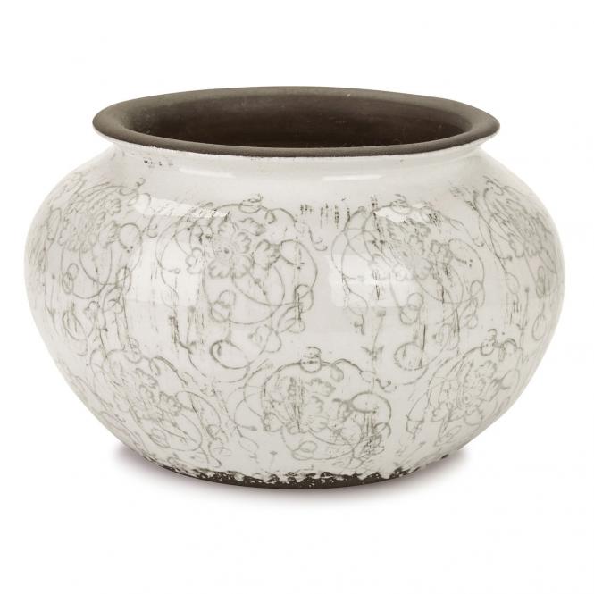 Ein abstraktes Linienmuster ziert den bauchigen Terrakotta-Topf. Die nicht ganz durchgehende Lasur unterstreicht einen hübschen Vintage-Look. Für Blumen oder Deko […]