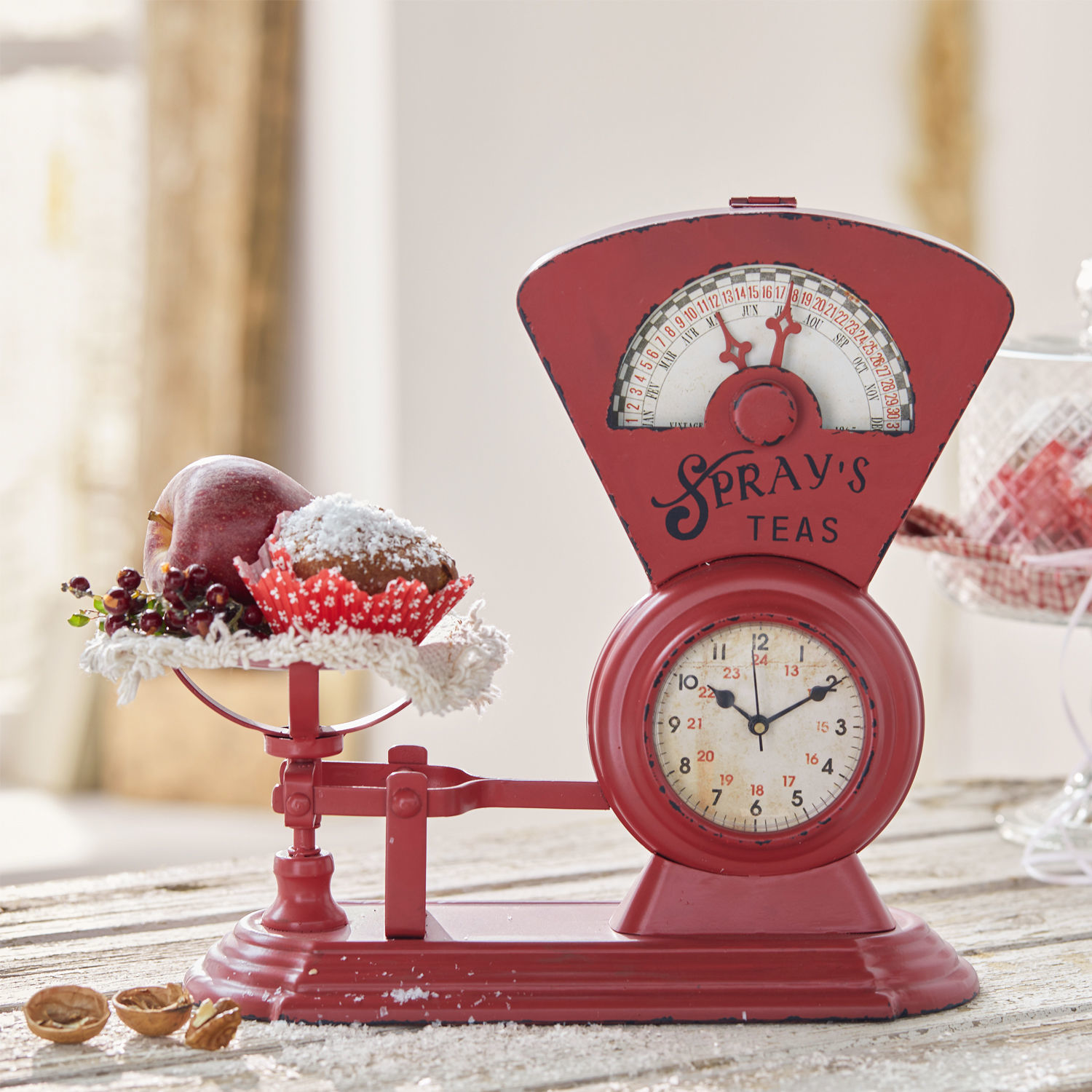 Kunstvoller Vintage-Look. Aus hochwertigem Eisen und Glas. Ähnelt einer alten Waage. Für eine AAA Batterie (exklusive) Charmanter könnte man sich die Uhrzeit kaum […]