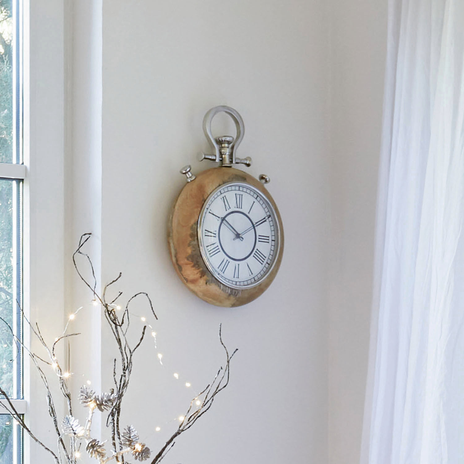 Dieser hochwertige Zeitmesser ist antiken Modellen des 19. Jahrhunderts nachempfunden. Natürlich schönes Mangoholz, antik-veredeltes Metall und eine ästhetische Glasabdeckung erfreuen das Auge des Betrachters. Charmante Applikationen zieren die Oberseite, während ein Ziffernblatt mit römischen Zahlen den Vintage-Charakter betont. Der elegante Look lässt sich auf vielfältige Art und Weise in unterschiedliche Wohnkonzepte integrieren.