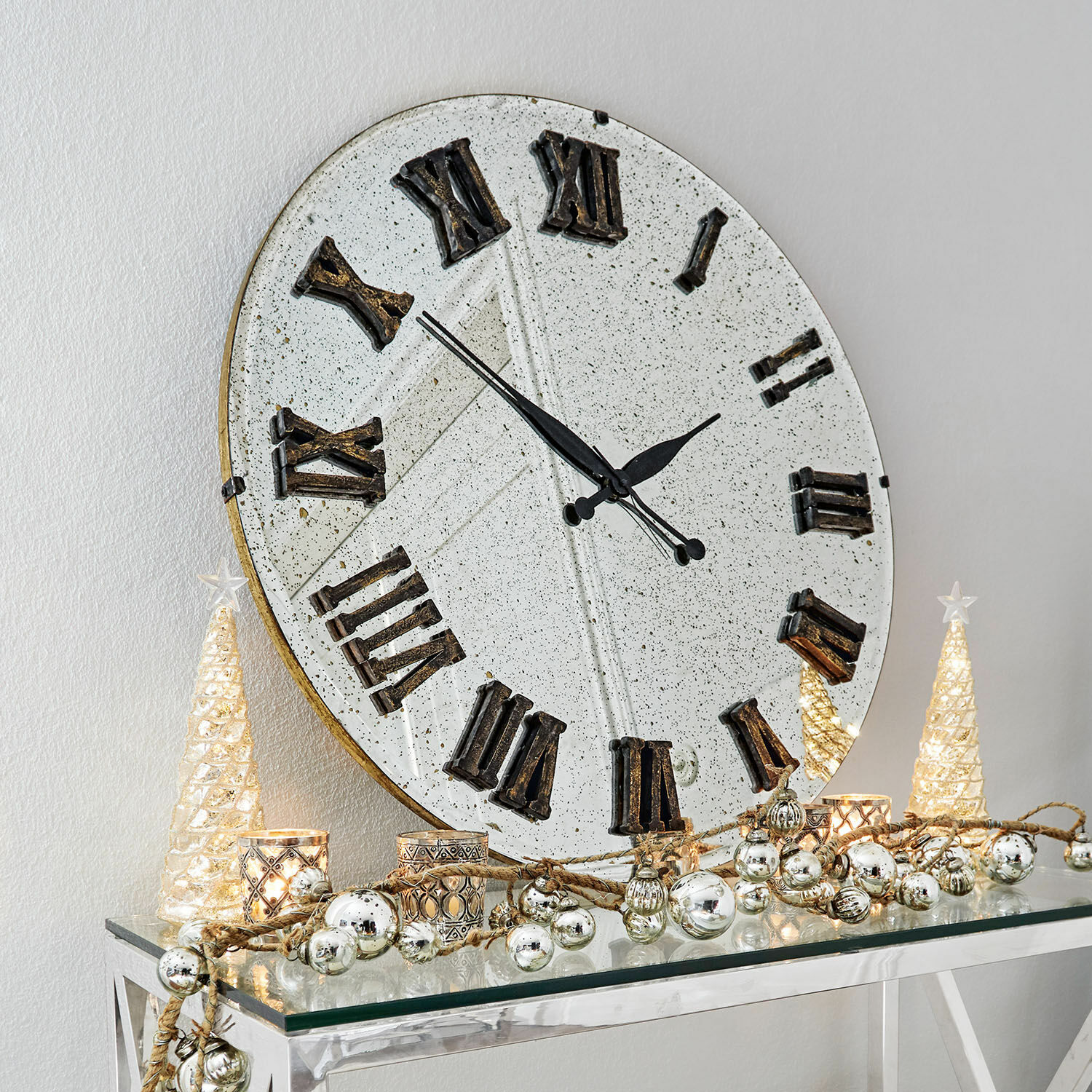 Römisches Ziffernblatt, Spiegelglas in edler Vintage-Optik: Dieser ästhetische Zeitmesser ist Uhr und Schmuckstück in einem. Kunstvolles antikes Finish und das schicke Ziffernblatt machen das Chronometer besonders schön. Lassen Sie sich von der Anmutung des antiken Roms begeistern und für eine Weile aus dem Alltag entführen. Dieses Schmuckstück ist immer für einen Augenblick des ruhigen Verweilens gut, denn sein kunstvolles Design zieht jeden Betrachter unweigerlich in den Bann. Ein einzigartiges Deko-Objekt, das in jedem Zimmer eine Zierde ist. Auch wenn die Minuten und Stunden vergehen – der Anblick dieses ästhetischen Objekts lässt Sie und all Ihre Gäste und Freunde fühlen: Die Kunst und das Schöne sind unvergänglich.