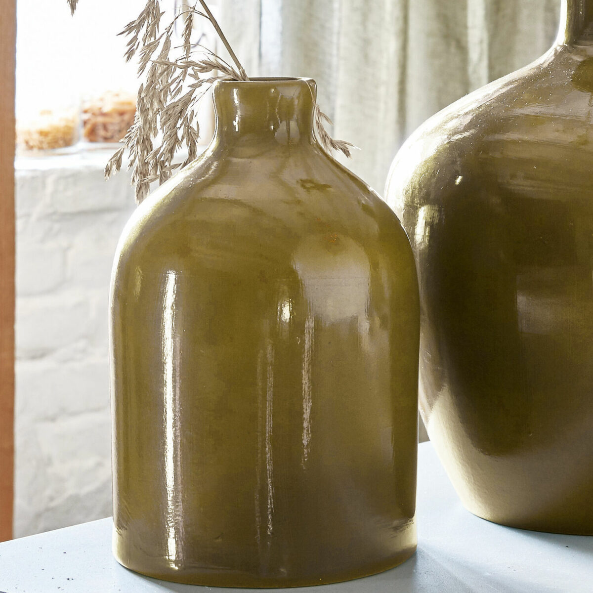 Sie sind ausdrucksstark in der Formgebung, wohnlich und edel in der Farbwahl und natürlich im Material – dieses Vasen-Set ist von zeitloser Schönheit und bereichert Ihr Zuhause auf besonders vielfältige Weise. Keramik ist ein besonders beliebtes Material für hochwertige Wohnaccessoires. Mit Glasur überzogen erhalten die Dekostücke ein glanzvolles Finish, das sie noch attraktiver und robuster macht. In unterschiedlicher Form und Größe bilden sie ein harmonisches Duo, das besonders in ländlichem Ambiente traumhaft zur Geltung kommt. Sie schmücken die rustikal anmutende Gästetafel oder setzen auf dem Sideboard oder Regal dekorative Akzente. Das Deko-Extra dazu holen Sie sich am besten von draußen – Beerenzweige, hübsche Blüher oder filigrane Gräser lassen sich in den Vasen fantastisch in Szene setzen – ganz nach Jahreszeit, Stimmung oder Anlass.