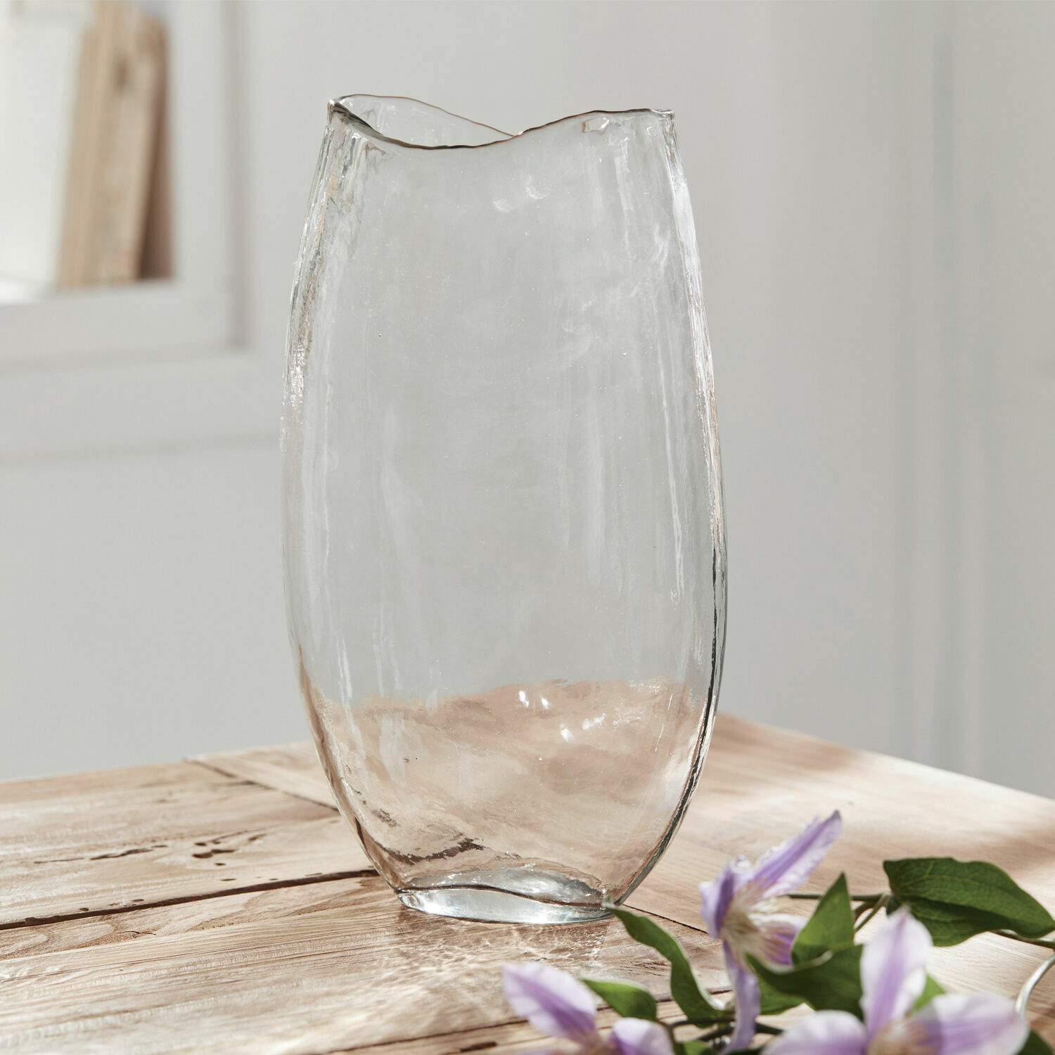 Ob zur farbenfrohen Osterzeit oder zu anderen Gelegenheiten: Bunte Blumen, grüne Gräser und formschöne Zweige sorgen immer für Wohlbefinden und eine heitere Stimmung. Diese hübsche Vase aus mundgeblasenem Glas ist ideal, um Zweige, einzelne Blumen oder auch Sträuße stilvoll zu präsentieren. Ob auf dem Fensterbrett, dem Esstisch oder im Wohnraum – die kunstfertig gestaltete Vase besticht durch ihre schlichte Eleganz, die mit ihrem welligen Rand durch ein spielerisches Element bereichert wird. Mit ihrem Charme passt sie in jedes Ambiente – vom französischen Landhausstil bis zu einem mondän gestalteten Ambiente mit Industrial-Elementen. Wie auch immer Ihre Räume eingerichtet sind – mit dieser Vase und schönen Blumen zaubern Sie zweifellos wunderhübsche Farbtupfer in Ihr Zuhause.