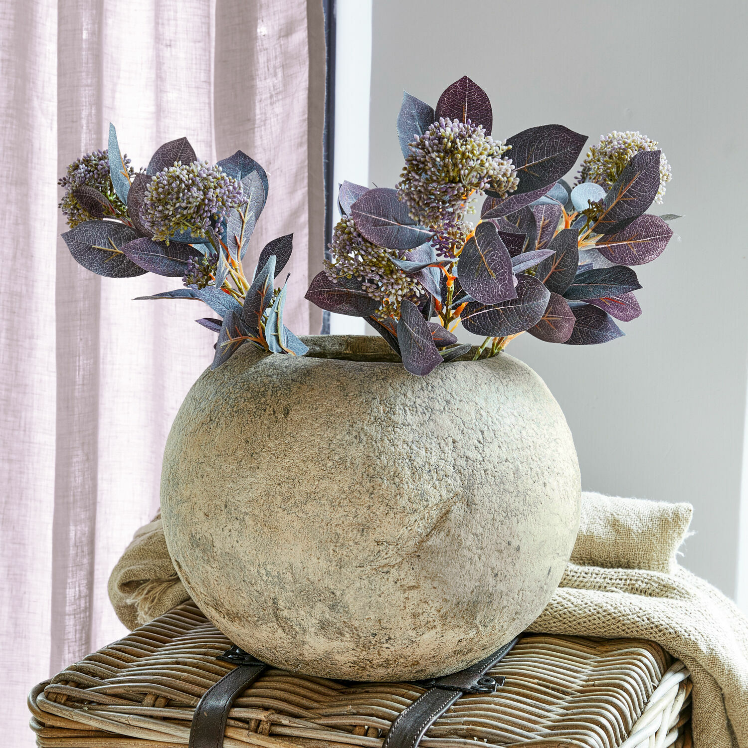 Wie direkt der Natur entnommen sieht sie aus: Unsere massive Vase aus Zement besticht mit ihrem besonderen Antik-Look. Dank des Materials und ihrer antikbeigen Farbe wirkt sie sehr natürlich. Die klare Form mit dem geschwungenen Rand unterstreicht den dezenten Chic. Der Zement verleiht der Vase außerdem eine besondere Haptik. Dank seiner zurückhaltenden Farbe und natürlichen Form unterstreicht das minimalistische Schmuckstück die Dekoration, die es präsentiert. Bunte Blumen, dekorative Äste und andere Objekte kommen in der Vase hervorragend zur Geltung. Sie passt zum Landhaus-Stil ebenso wie zu einer avantgardistischen Einrichtung oder zu einem verspielten Antik-Look. Außen wird empfohlen, sie überdacht aufzustellen. Am schönsten schmückt das Gefäß die Innenräume, da es aufgrund des Materials nicht frostfest ist. Dekoration ist im Lieferumfang nicht enthalten. So können Sie selbst kreativ werden!