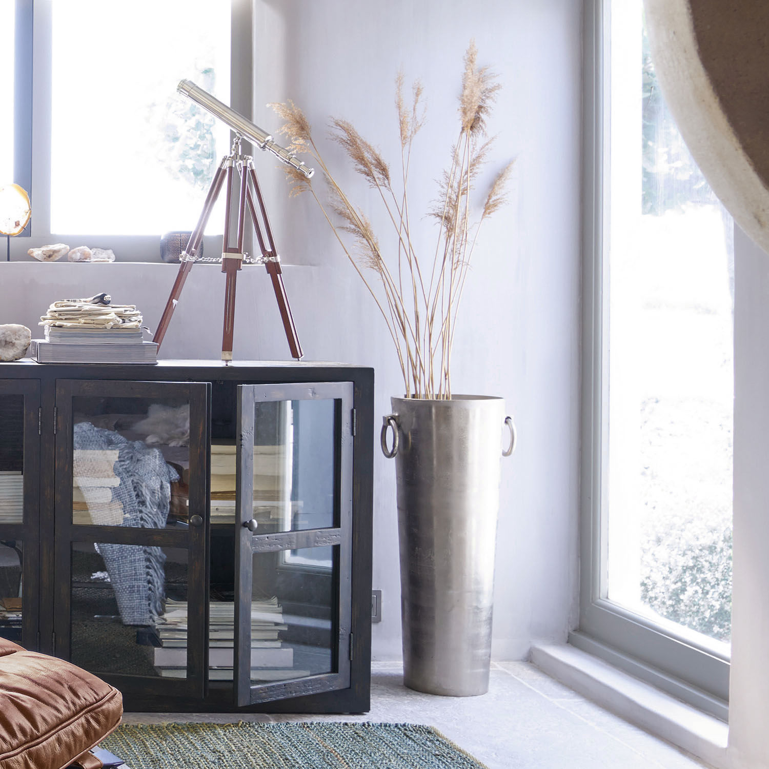 Imposante Bodenvase aus schwerem Aluminiumguss mit dekorativen Griffringen. Ob solo oder mit kräftigen Ästen dekoriert – diese Bodenvase aus schwerem Aluminiumguss […]