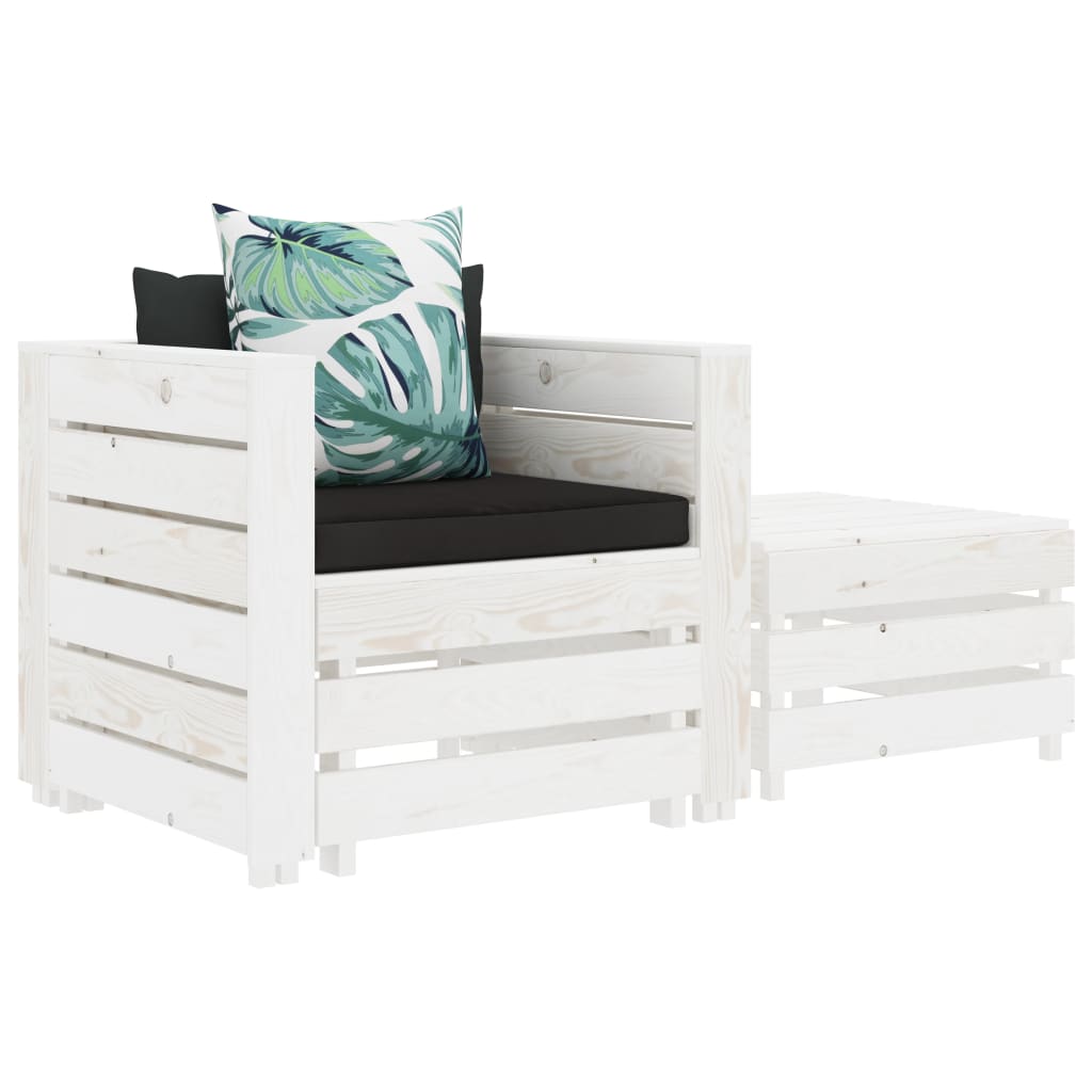 Das Garten-Paletten-Set ist die ideale Wahl, um sich zu entspannen und das Wetter zu genießen, ein Nickerchen zu machen oder mit Ihrer Familie oder Freunden zu plaudern. Mit ihrem zeitlosen Palettendesign verleiht die Sofagarnitur Ihrer Terrasse, Ihrem Garten oder Wohnzimmer einen rustikalen Charme. Das Lounge-Set aus hochwertigem Kiefernholz ist langlebig, wetterbeständig und umweltfreundlich. Dieses Lounge-Set hat eine solide Konstruktion und erfordert wenig Wartung. Mit weichen, dick gepolsterten Kissen geliefert, bietet es höchsten Komfort. Auf dem Palettentisch können Sie Ihre Getränke, Snacks und Zeitschriften in Ihrer Freizeit griffbereit halten. Die Lieferung umfasst 1 Palettensessel, 1 Palettentisch, 1 Sitzkissen und 1 Rückenkissen. Das Gartenmöbelset ist einfach zu montieren. Bitte beachten Sie, dass Holz ein Naturprodukt ist und Unvollkommenheiten aufweisen kann.