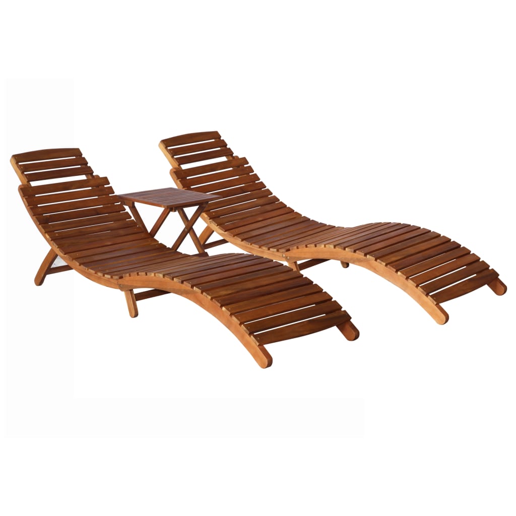 Dieses Sonnenliegen-Set aus Holz ist eine perfekte Wahl für Ihren Garten, Ihre Terrasse oder Ihre Veranda. Dieses Garten-Lounge-Set verfügt über eine starke Konstruktion aus massivem Akazienholz, was es stabil und langlebig macht. Auf der robusten Tischplatte lassen sich Kleinigkeiten griffbereit halten. Bei Nichtgebrauch können die Sonnenliegen und der Tisch zusammengeklappt werden, um Platz zu sparen. Wichtiger Hinweis: Farbe und Maserung variieren von Stück zu Stück, so dass jedes Möbelstück einzigartig ist. Die Lieferung erfolgt nach dem Zufallsprinzip.