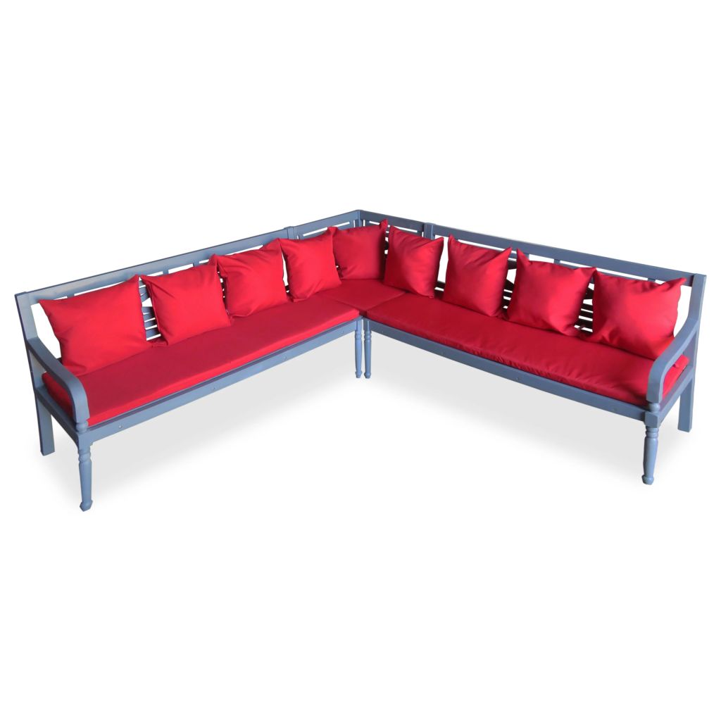 Dieses Ecksofa hat ein einfaches, aber stilvolles Design und ist eine tolle Ergänzung für Ihren Wohnbereich. Es ist sowohl für den Innen- als auch für den Außenbereich geeignet. Dieses Sofa-Set wurde aus massivem Akazienholz gefertigt, das für eine lange Lebensdauer lackiert wurde. Die mitgelieferten Sitzpolster und Kissen sind aus hochwertigem, wasserabweisendem Gewebe gefertigt und für höchsten Tragekomfort dick gepolstert. Die Lieferung umfasst 2 2-Sitzer-Sofas, 2 2-Sitzer-Sofapolster, 1 Ecksofa, 1 Ecksofakissen und 9 Kissen.
