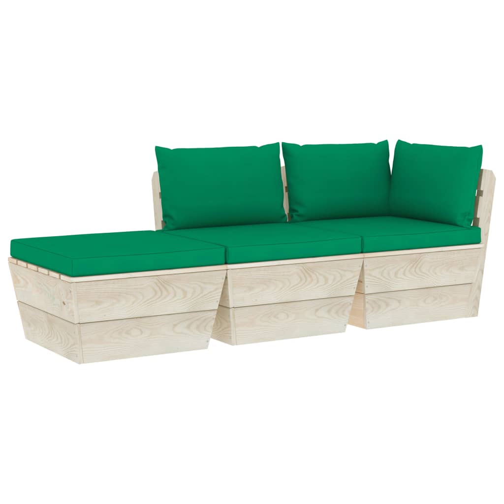Diese 3-teilige Garten-Sofagarnitur aus Paletten mit Kissen ist eine ausgezeichnete Wahl, um sich zu entspannen und das Wetter zu genießen, ein Nickerchen zu machen oder mit Ihrer Familie oder Freunden zu plaudern. Mit seinem zeitlosen Palettendesign verleiht dieses Lounge-Set aus Holz Ihrer Terrasse, Ihrem Garten oder Ihrem Wohnzimmer einen Hauch von rustikalem Charme. Das Garten-Lounge-Set besteht aus imprägniertem Fichtenholz und ist somit langlebig und stabil. Diese Terrassen-Sofagarnitur verfügt über eine solide Konstruktion und ist wartungsarm. Dank der Bezüge aus 100 % Polyester und der dicken Polsterung fühlen sich die Palettenauflagen weich an und bieten höchsten Komfort. Darüber hinaus ermöglicht Ihnen der modulare Aufbau, das Set in einer beliebigen Anordnung je nach Ihrem Geschmack aufzustellen. Bitte beachten Sie, dass Holz ein Naturprodukt ist und daher Unvollkommenheiten aufweisen kann.