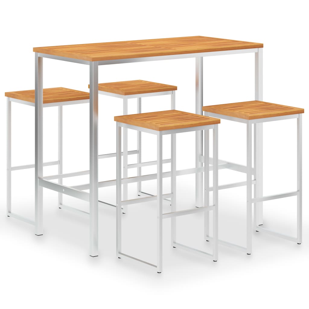vidaXL 5-tlg. Bar-Set Massivholz Akazie und Edelstahl