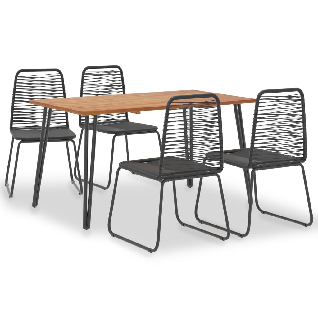 Diese Garten-Essgruppe kombiniert Stil und Funktionalität. Sie wird das absolute Highlight in Ihrem Garten oder auf Ihrer Terrasse sein! Der Garten-Esstisch verfügt über eine Tischplatte aus massivem Akazienholz, einem tropischen Hartholz, das wetterbeständig und äußerst langlebig ist. Die pulverbeschichtete Metallkonstruktion ist korrosionsbeständig und rostbeständig; es verleiht dem Tisch ein industrielles Aussehen. Die Stühle sind aus PE-Rattan gefertigt, wodurch sie leicht, wasserabweisend und pflegeleicht sind. Sie können das ganze Jahr über im Freien verwendet werden. Die pulverbeschichteten Stahlrahmen verleihen den Stühlen zudem eine hohe Stabilität und sorgen für eine lange Lebensdauer. Die ergonomisch gestaltete Form sorgt für maximalen Sitzkomfort.Das Set ist einfach zu montieren. Hinweis: Wir empfehlen, es bei Regen, Schnee und Frost abzudecken, um eine lange Lebensdauer zu gewährleisten.