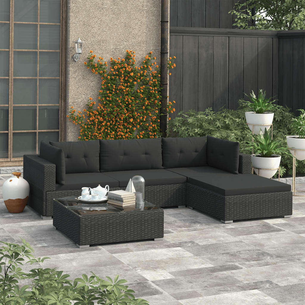 Diese Rattan-Gartensofagarnitur vereint Stil und Funktionalität und wird zum Hingucker in Ihrem Garten oder auf der Terrasse sein. Das gesamte Möbel-Set ist für die ganzjährige Nutzung im Freien vorgesehen. Dank des witterungsbeständigen und wasserdichten PE-Rattans ist das Lounge-Set pflegeleicht, strapazierfähig und für den täglichen Gebrauch bestens geeignet. Das Gartensofa-Set verfügt über einen stabilen, pulverbeschichteten Stahlrahmen, der extrem langlebig ist. Die leichtgewichtige und modulare Bauweise macht es möglich, dass Sie die Sitzgruppe, passend zu den Platzverhältnissen vor Ort, immer wieder neu aufstellen bzw. umstellen. Die dick gepolsterten, abnehmbaren Kissen sorgen für hohen Sitzkomfort. Im Lieferumfang enthalten sind 2 Ecksofas, 1 Mittelsofa, 1 Ottoman, 1 Teetisch, 4 Sitzkissen und 5 Rückenkissen. Hinweis: Wir empfehlen Ihnen, das Set bei Regen, Schnee und Frost abzudecken.