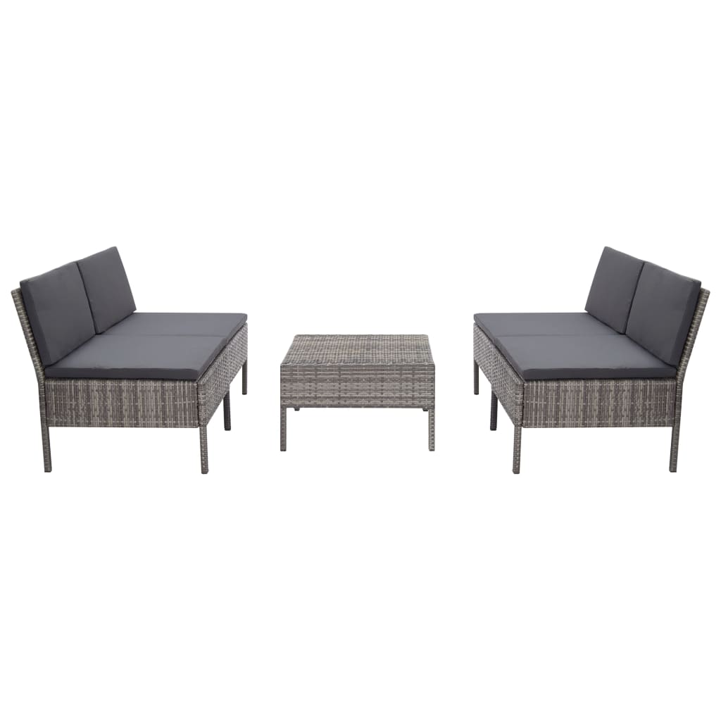 Schaffen Sie mit dieser Garten-Sofagarnitur den Entspannungsbereich Ihrer Träume. Auf dieser modularen Sofagarnitur können Sie mit Ihrer Familie und Freunden einen entspannten, sonnigen Nachmittag oder Sommerabend genießen! Das Set besteht aus 5 Teilen und lässt sich ganz nach Belieben anordnen und konfigurieren. Aus strapazierfähigem PE-Rattan mit einem pulverbeschichteten Stahlgestell gefertigt, ist das Set stabil, robust und wetterbeständig. Dank des allwettertauglichen PE-Rattans ist das Lounge-Set pflegeleicht, strapazierfähig und alltagstauglich. Die dick gepolsterten Auflagen und die extra tiefen, modernen Sitze sorgen jederzeit für ultimative Entspannung. Dank des leichten und modularen Designs können Sie diese Garnitur außerdem ganz einfach um das Haus umstellen. Hinweis: Wir empfehlen Ihnen, das Rattan-Set bei Regen, Schnee oder Frost abzudecken.