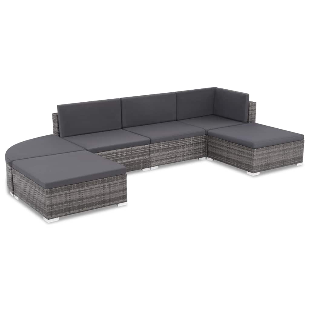 Diese Sitzgruppe aus Poly Rattan, bestehend aus 1 Ecksofa, 2 Mittelsofas, 2 quadratischen Hockern, 1 abgerundeten Hocker und 10 Kissen, bietet einen stilvollen Sitzbereich für Ihren Garten bzw. Ihre Terrasse. Dank des wasserfesten PE-Rattans ist das Terrassensofa pflegeleicht, strapazierfähig und für den täglichen Gebrauch im Freien geeignet. Die pulverbeschichteten Stahlrahmen machen das Set stabil und langlebig. Es ist sehr leicht und die modularen Abschnitte können leicht in verschiedene Konfigurationen kombiniert werden. Dieses Set wird auch mit den äußerst bequemen, dick gepolsterten Kissen für ultimativen Komfort geliefert. Die pflegeleichten Polyesterüberzüge können auch abgenommen und gewaschen werden. Dieses Set ist spielend einfach zu montieren. Hinweis: Wir empfehlen, das Set bei Regen, Schnee und Frost abzudecken, um eine lange Lebensdauer zu gewährleisten.