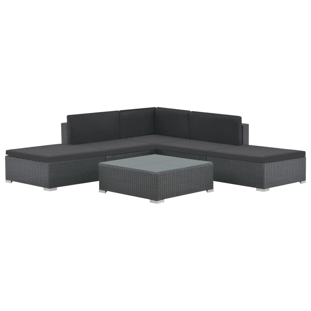 Dieses Poly Rattan Sofa-Set, bestehend aus 1 Sofa-Eckelement, 2 Sofa-Mittelstücken, 1 Couchtisch, 2 Ottomanen, 4 Rückenpolstern und 5 Sitzpolstern, bietet eine stilvolle Sitzecke für Ihren Garten oder Ihre Terrasse. Dank des wetterfesten PE-Rattans ist das Terrassensofa-Set pflegeleicht, strapazierfähig und für den täglichen Gebrauch im Freien geeignet. Die pulverbeschichteten Stahlrahmen machen das Set stabil und langlebig. Es ist sehr leicht und die modularen Abschnitte können leicht in verschiedene Konfigurationen kombiniert werden. Dieses Set wird auch samt äußerst bequemen, dick gepolsterten Rücken- und Sitzpolstern geliefert, die für ultimativen Komfort sorgen. Die pflegeleichten Polyesterbezüge können auch abgenommen und gewaschen werden. Dieses Set muss zusammengebaut werden. Hinweis: Wir empfehlen, das Set bei Regen, Schnee und Frost abzudecken, um eine lange Lebensdauer zu gewährleisten.