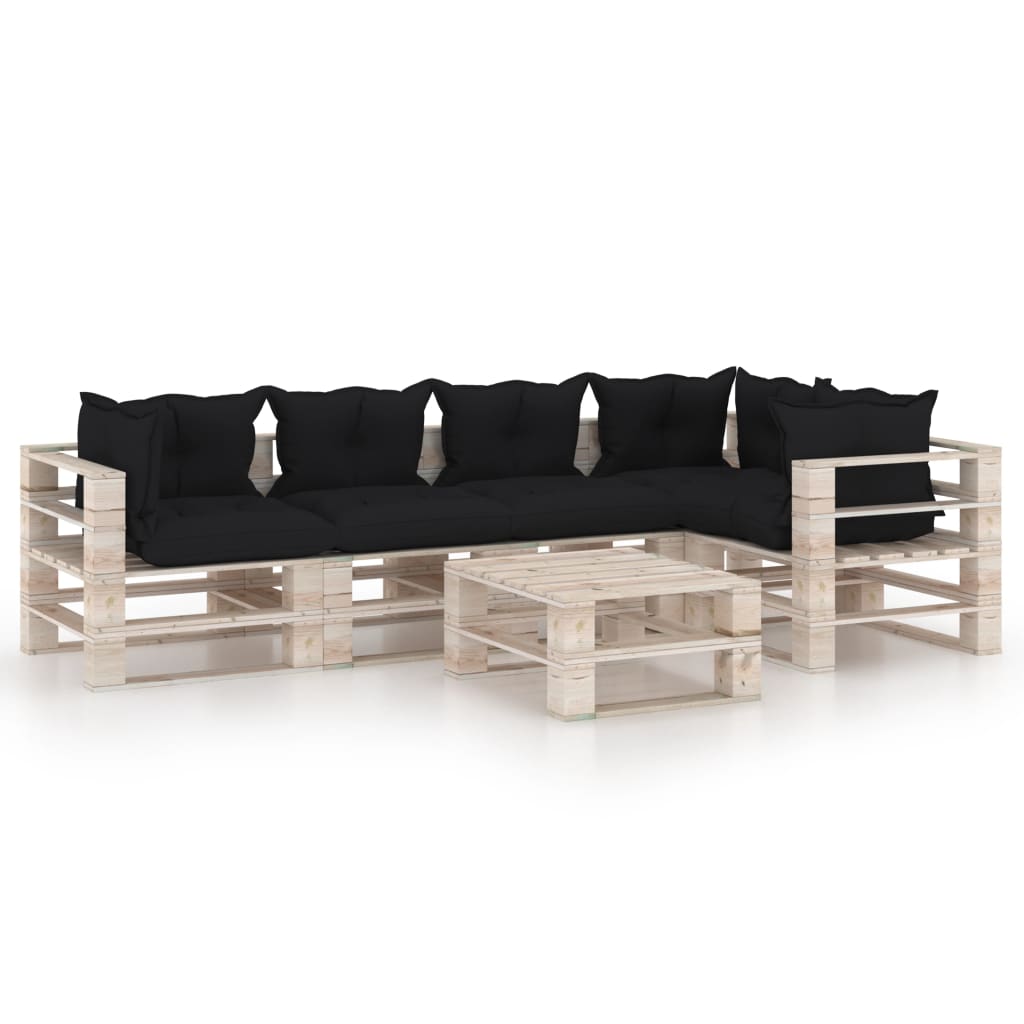 Diese trendige Garten-Sofagarnitur mit Kissen ist aus Kiefernholz gefertigt und eine ideale Wahl, um sich zu entspannen und das Wetter zu genießen, ein Nickerchen zu machen oder mit Ihrer Familie oder Freunden zu plaudern. Das Holz-Lounge-Set mit zeitlosem Paletten-Design verleiht Ihrer Terrasse, Ihrem Garten oder Wohnzimmer einen Hauch von rustikalem Charme. Das Garten-Lounge-Set aus Kiefernholz ist langlebig, wetterbeständig und umweltfreundlich. Diese Terrassen-Sofagarnitur verfügt über eine solide Konstruktion und ist wartungsarm. In Kombination mit weichen, dick gepolsterten Kissen bietet dieses Lounge-Set höchsten Komfort. Der Couchtisch ist ideal, um Speisen und Getränke in Reichweite zu halten. Darüber hinaus enthält das Set viele Teile, mit denen Sie je nach Geschmack verschiedene Layouts und Kombinationen auswählen können. Bitte beachten Sie, dass Holz ein Naturprodukt ist und daher Unvollkommenheiten aufweisen kann.