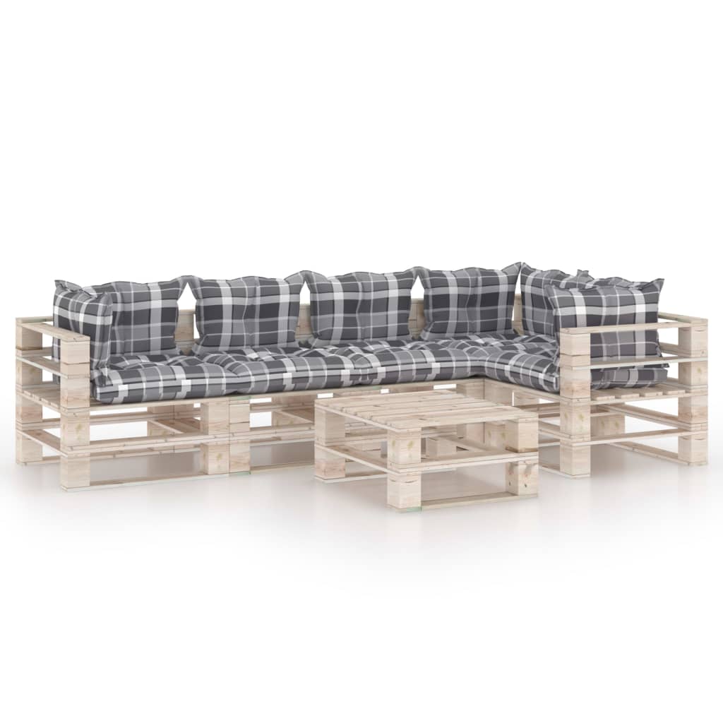 Diese trendige Garten-Sofagarnitur mit Kissen ist aus Kiefernholz gefertigt und eine ideale Wahl, um sich zu entspannen und das Wetter zu genießen, ein Nickerchen zu machen oder mit Ihrer Familie oder Freunden zu plaudern. Das Holz-Lounge-Set mit zeitlosem Paletten-Design verleiht Ihrer Terrasse, Ihrem Garten oder Wohnzimmer einen Hauch von rustikalem Charme. Das Garten-Lounge-Set aus Kiefernholz ist langlebig, wetterbeständig und umweltfreundlich. Diese Terrassen-Sofagarnitur verfügt über eine solide Konstruktion und ist wartungsarm. In Kombination mit weichen, dick gepolsterten Kissen bietet dieses Lounge-Set höchsten Komfort. Der Couchtisch ist ideal, um Speisen und Getränke in Reichweite zu halten. Darüber hinaus enthält das Set viele Teile, mit denen Sie je nach Geschmack verschiedene Layouts und Kombinationen auswählen können. Bitte beachten Sie, dass Holz ein Naturprodukt ist und daher Unvollkommenheiten aufweisen kann.