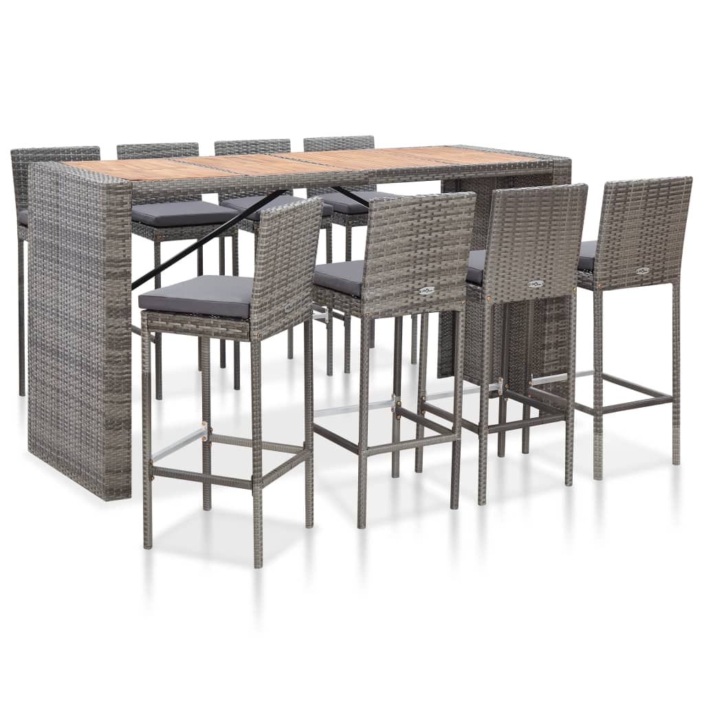 vidaXL 9-tlg. Garten-Bar-Set Poly Rattan und Akazienholz...