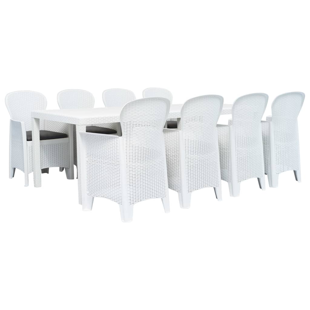 vidaXL 9-tlg. Garten-Essgruppe Kunststoff Weiß Rattan-Optik
