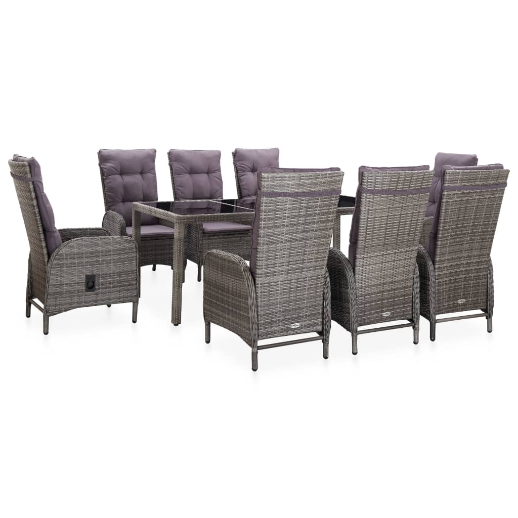 Genießen Sie Familienfeiern mit dieser 9-teiligen Essgruppe! Mit diesem Ess-Set können Sie mühelos die Bedürfnisse Ihrer Gäste befriedigen und gleichzeitig eine perfekte Umgebung für das Essen im Freien schaffen! Hergestellt aus UV-geschütztem PE-Rattan mit stabilem Stahlrahmen in Pulverbeschichtung ist dieses Ess-Set wetterbeständig und robust für eine langjährige, zuverlässige Verwendung. Die verstärkte Hartglasplatte erzeugt eine glatte und leicht zu reinigende Oberfläche. Dieses Set bietet Platz für bis zu 8 Personen, ohne das man sich beengt fühlt. Jeder Sitz verfügt über ein herausnehmbares, dick gepolstertes Kissen für zusätzlichen Komfort in der Ruhezeit. Darüber hinaus macht die leichte Rattankonstruktion es einfach jedes Möbelstück zu bewegen, umzustellen oder zu transportieren. Die Lieferung umfasst 1 Esstisch, 8 Armlehnstühle und 8 Sitzkissen. Hinweis: Wir empfehlen, das Set bei Regen, Schnee, Frost oder anderen rauen Wetterbedingungen abzudecken, um die Lebensdauer zu verlängern.
