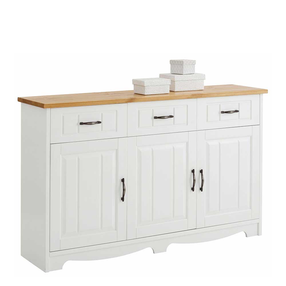 Vollholzkommode in Weiß und Kiefer Honigfarben Landhausstil