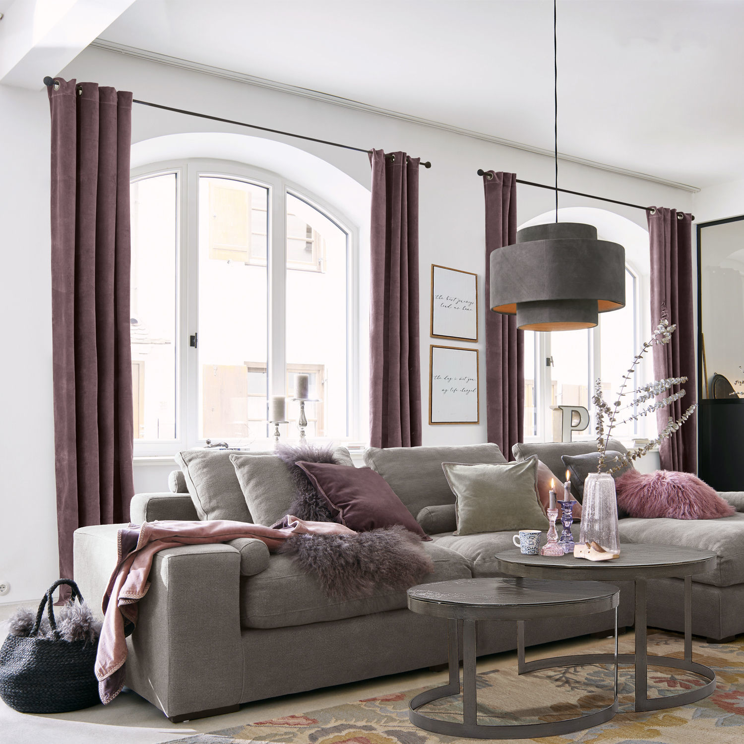 Manchmal muss es das Besondere sein. Mit dem exquisiten Vorhang aus hochwertigem Baumwollsamt bringen Sie eine stilvolle und zugleich behagliche Atmosphäre in Ihr Wohnambiente. War der noble Stoff einst nur den Adeligen und Reichen vorbehalten, erfreut er sich heute wieder größter Beliebtheit – vor allem in der spannenden Welt des Wohnens. Edel schimmernd und elegant im Fall zeigt sich der Vorhang mit einer Außenseite aus dichtem Flor und einer Abseite aus glatter Baumwolle. Die markanten Ösen im Antik-Look fügen sich stilbewusst in das Design mit ein – mit ihnen lässt sich das Accessoire problemlos auf die Gardinenstange anbringen. Ein dekorativer Blickfang, nicht nur für Ihr Wohnzimmer. Auch im Schlafzimmer oder in der Diele versprüht das Wohntextil einen Hauch Nostalgie. Großzügig vor das Fenster gezogen, dient es als Schutz vor Licht, Sonneneinstrahlung und neugierigen Blicken. Besonders reizvoll und modern wirkt die Gardine zum Shabby-Chic, Landhaus-Stil oder Vintage-Look.