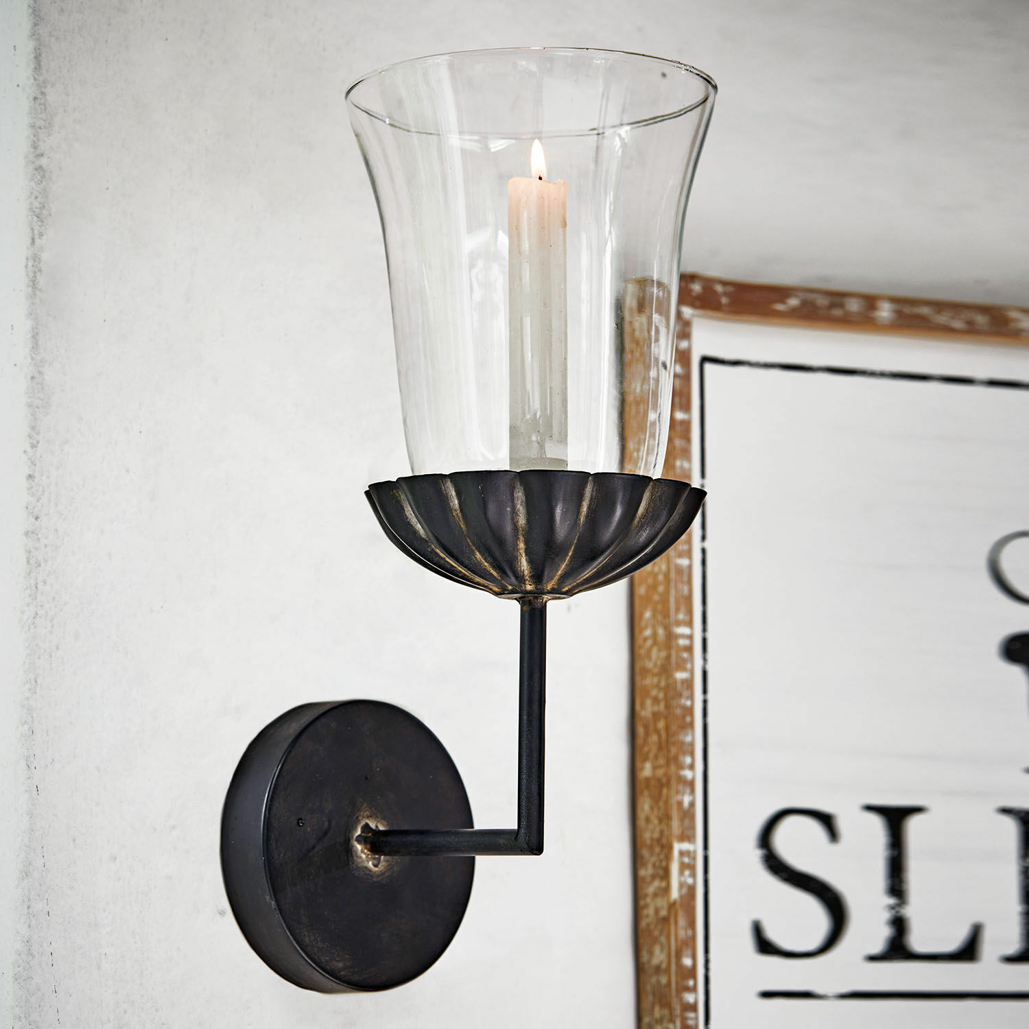 Kerzenlicht ist Romantik, ist Nostalgie, ist Natur. Es verzaubert und hüllt jede Umgebung in ein Ambiente sinnlicher, beruhigender Stimmung: Dieser Wandkerzenhalter sorgt in Ihrem schönen Zuhause für den Charme, den man mit flackerndem Kerzenlicht verbindet. Ob in Innenräumen wie Wohn-, Speise- und Arbeitszimmer oder im Außenbereich an der Wand Ihrer Terrasse oder Ihrem Balkon – freuen Sie sich auf eine Illumination, die Ihre abendlichen Stunden entspannend schön macht. Die Halterung ist für Stabkerzen gedacht. Bei der Wahl sind Sie ganz frei, da kein Zubehör im Lieferumfang enthalten ist. Der Kerzenaufsatz und die Glasform, die an eine Blume erinnern, machen das Schmuckstück besonders schön.