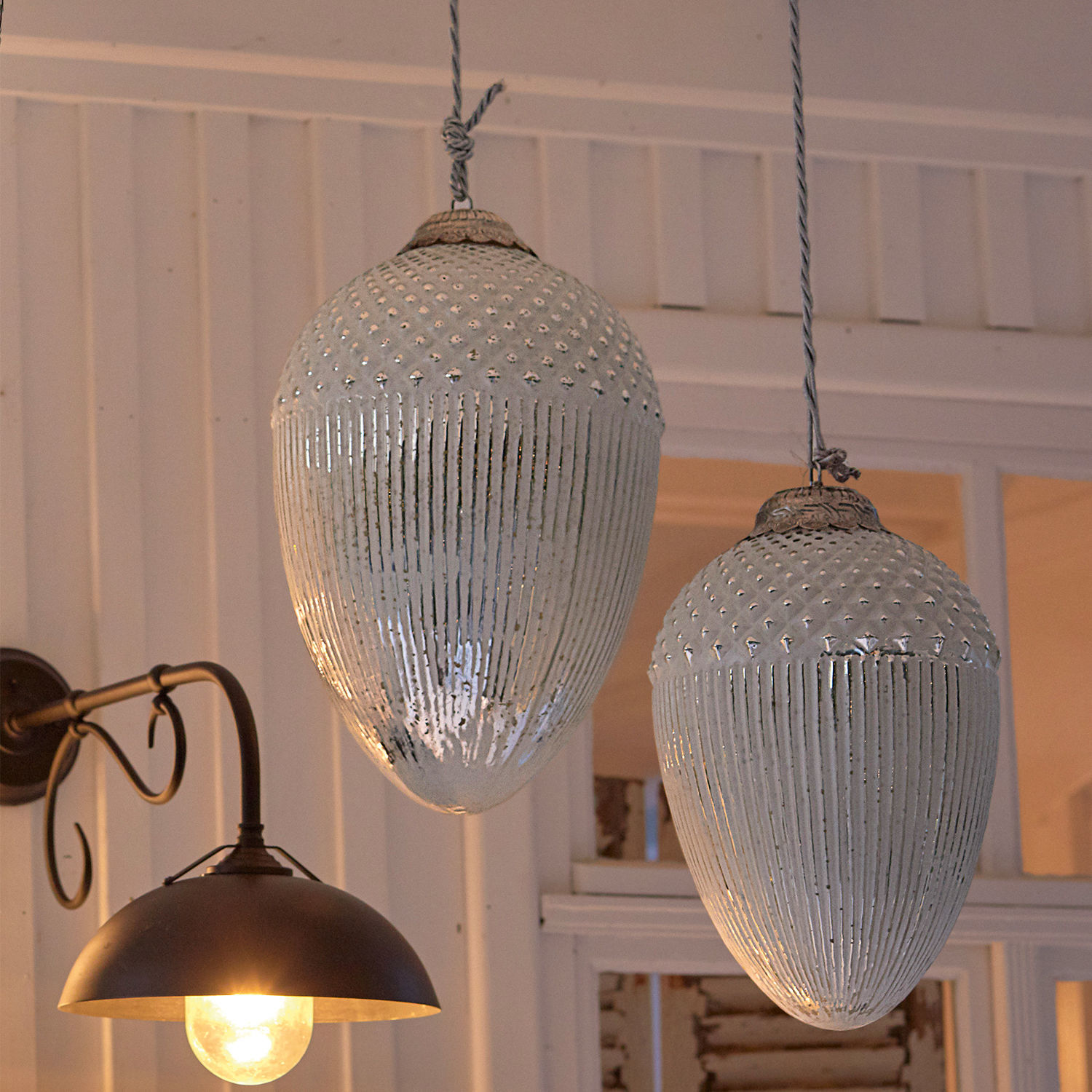 Ein größeres und ein kleineres Objekt in Form von hübsch verschneiten Eicheln gehört zu dem Set. Das mundgeblasene Glas wurde mit einem schönen Finish versehen. Dieses gibt dem Duo einen besonders winterlichen Charme. Der aufwendige Schliff lässt sie besonders authentisch aussehen. Die imposante Größe dieser zwei Boten aus dem Winterwald macht sie zu einem wunderschönen Hingucker im Raum oder auch im Bereich der Eingangstür oder auf der überdachten Terrasse. Besonders schön sehen die beiden zusammen im Zusammenspiel mit dem satten Grün großer Tannenzweige aus. Auch neben dem Weihnachtsbaum oder dem Kamin verbreiten sie lauschiges Flair. Das Design passt gleichermaßen zum Wohnen mit viel Holz wie etwa dem Chalet-Chic, zu weißem Interior von Landhaus-Stil oder Shabby-Chic und auch zum klassischem Stil macht sich diese einzigartige Winter-Dekoration ganz hervorragend.