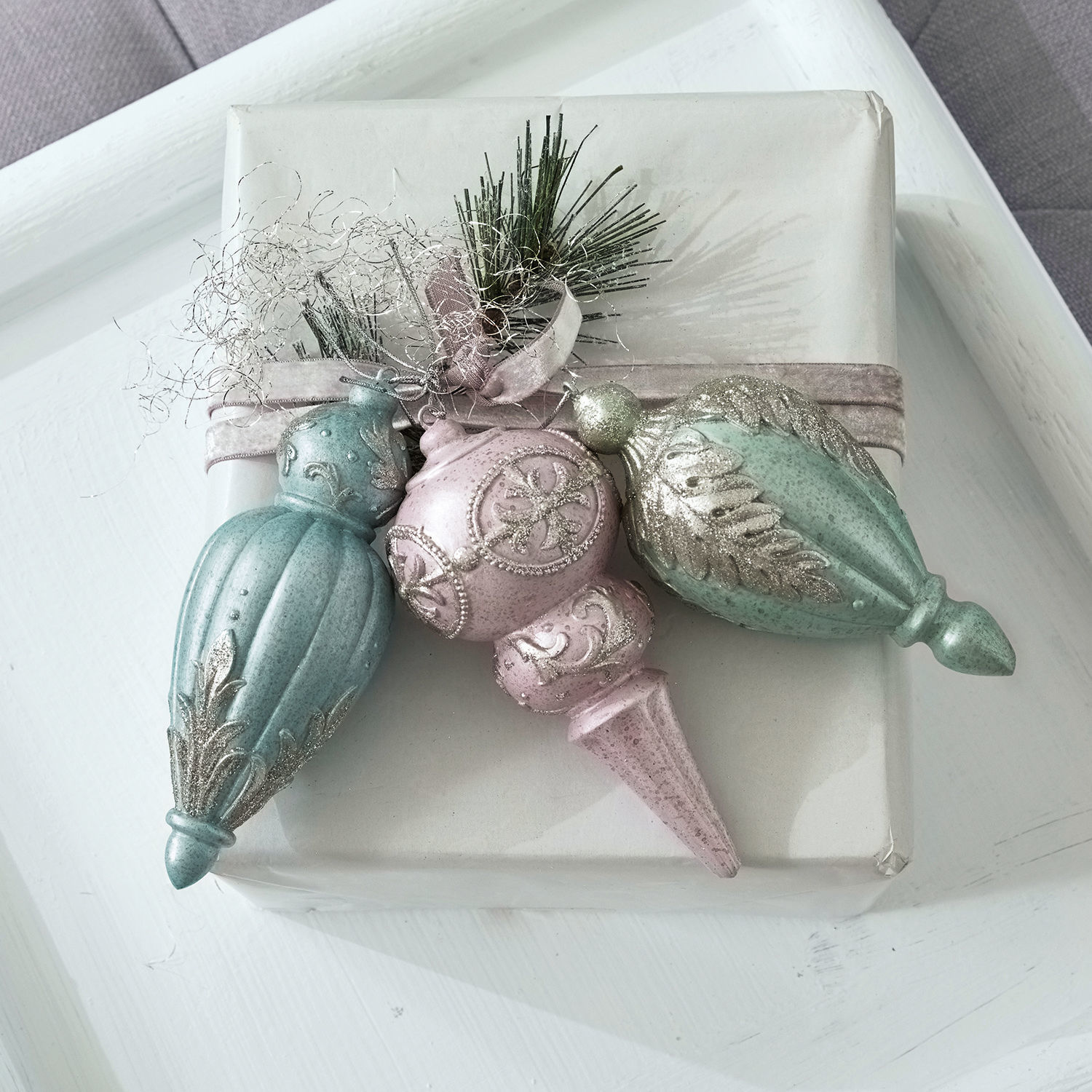 Drei wunderschöne und sehr fein gearbeitete Schmuckstücke, die aus einem märchenhaften Schneepalast stammen könnten. Die edlen Anhänger sind in eisige Pastelltöne getaucht. Aufwendige Verzierungen und feiner Goldglitzer machen sie zu etwas ganz Besonderem. Das Set aus Polyresin wirkt zart wie Glas, ist aber deutlich bruchsicherer – ein Vorteil etwa mit Kindern und Tieren im Haus. Zum Shabby-Chic sind sie eine sehr harmonische Ergänzung, und Ihre Tanne gewinnt dadurch an romantischem Flair. Dank des passenden Aufhängers, der schon inklusive ist, lassen sie sich auch gleich einsetzen. Die drei unterschiedlichen Kunstwerke sind so attraktiv, dass sie auch als einzelne Highlights auftreten können – vielleicht an einem Wandhaken aufgehängt oder als Schmuck am Fenstergriff. Wer es romantisch mag, wird sie einfach lieben und sich vielleicht auch über Weihnachten hinaus von diesem reizenden Anblick verzaubern lassen.
