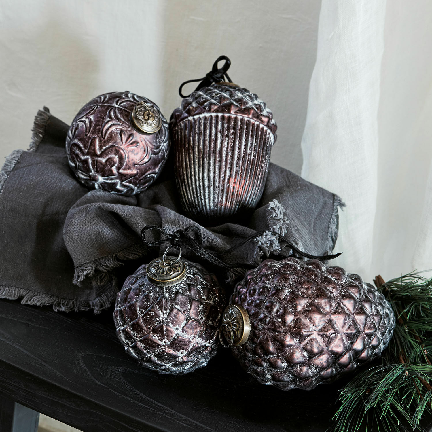 Dieses hübsche 4er-Set bringt den weihnachtlichen Geist vergangener Zeiten in Ihr Wohnzimmer. Das Arrangement aus vier Stücken in verschiedenen Größen und Designs ist ebenso schön wie elegant. Das antike Finish intensiviert die Schönheit der feinen Details. Gestalten Sie Ihre ganz persönliche Weihnachtsgeschichte und erfreuen Sie sich an der schönen Handwerkskunst dieses Quartetts, das den Charme jahrzehntealter Erbstücke widerspiegelt. Jedes Stück wird aus Glas geformt, aufwendig veredelt und mit einer Aufhängung aus Messing komplettiert. Hängen Sie es traditionell an den Weihnachtsbaum oder legen Sie die schönen Schmuckstücke in eine Schale – sie werden überall ihren Charme verbreiten.