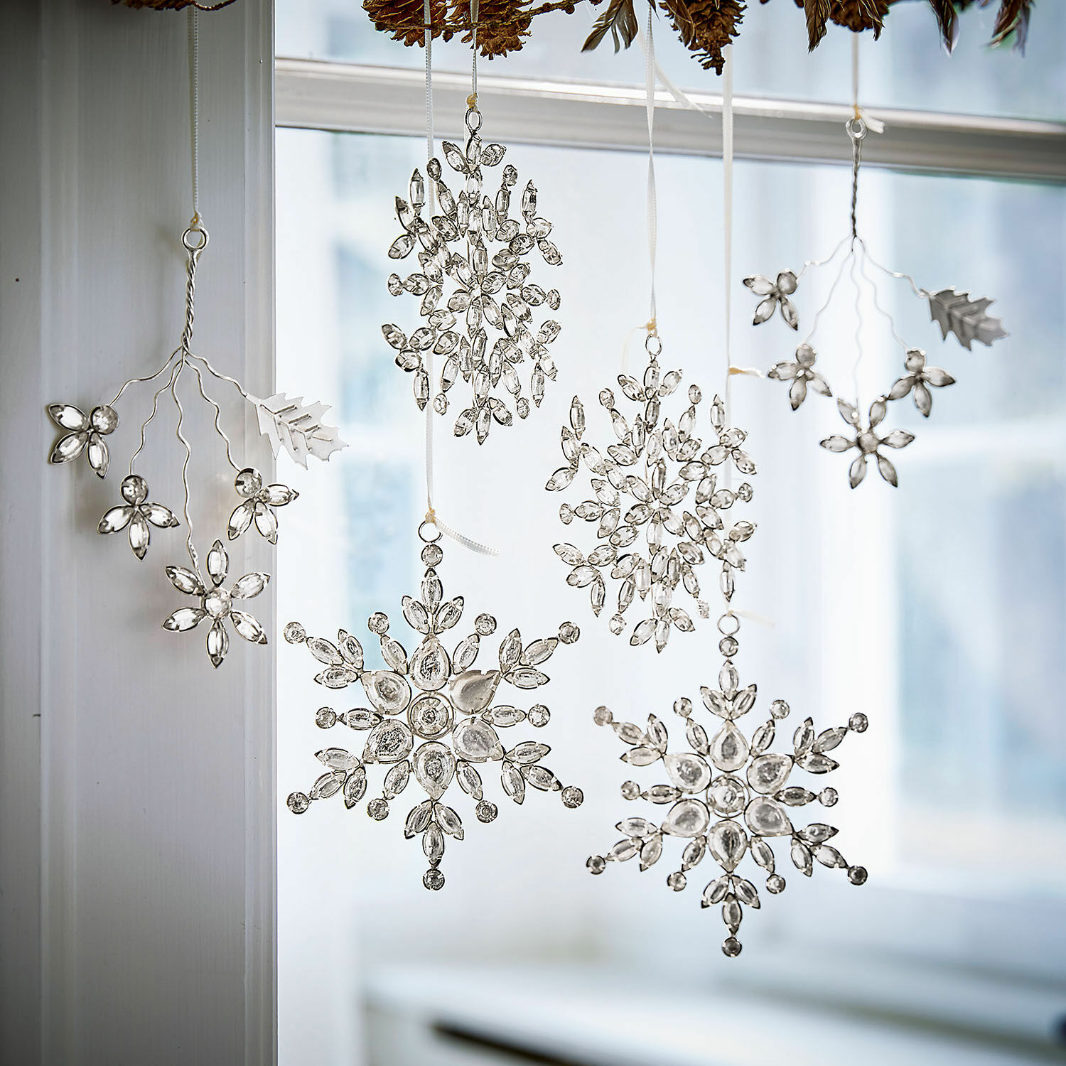 Die Anhänger in diesem sechsteiligen Weihnachtsschmuck-Set ähneln glitzernden Schätzen aus dem Winterwunderland. Die glamourösen Winter-Accessoires sind aus hochwertigem Eisen gefertigt und mit funkelnden Glasperlen bestückt. Das lässt sie im Sonnen- oder Kerzenlicht ganz herrlich funkeln. Die unterschiedlichen Motive sorgen für ein festliches Ambiente zu den Feiertagen: Da hätten wir Schneeflocken, kleine Sterne und auch filigran geformte Blätter. Dieses traumhaft schöne Set verleiht Ihrem Zuhause einen einzigartigen Glanz und veredelt Ihre Festtagsdekoration auf eindrucksvolle Weise. Veredeln Sie Ihren Weihnachtsbaum oder nutzen Sie die stilvollen Schmuckstücke, um Geschenke für Ihre Liebsten zu verschönern.
